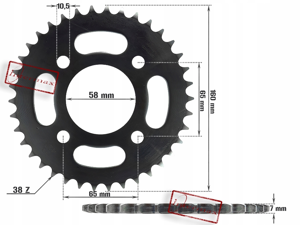 Задня стійка задня частина 38 зубів 428 Romet R125 / R150 / Zipp SK 125