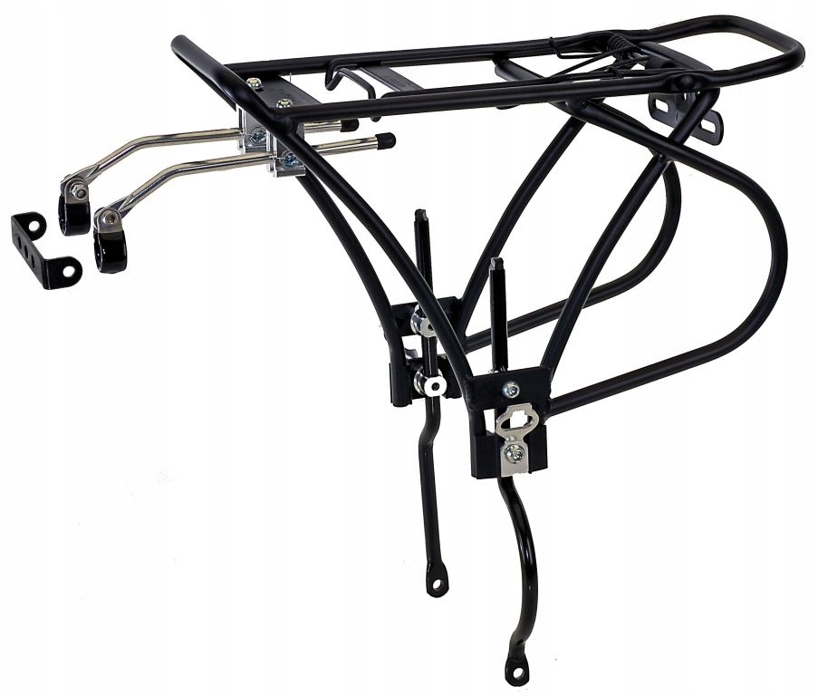 Пристосована для кріплення гуми багажника - спеціальні гаки. Конструкція, розроблена для кошиків - бічні сторони запобігають втягуванню кошика в спиці колеса. Універсальна установка - додаткові затискачі включені, якщо наша рама не має різьби, підготовленої для кріплення верхніх штанг.