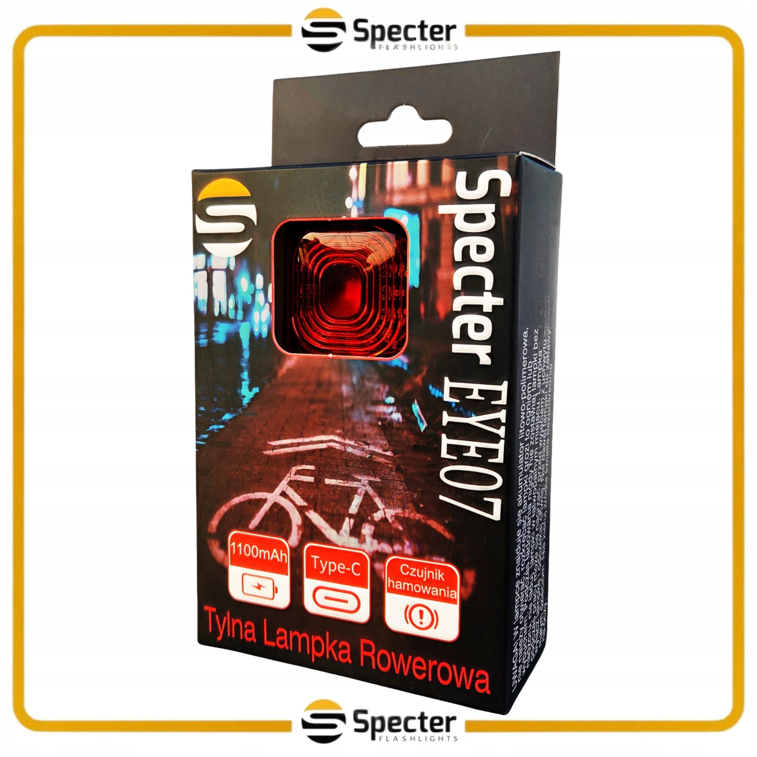 Задня велосипедна лампа Specter Eye07 1100mah Stop Start IP66 USB C 6 Режими