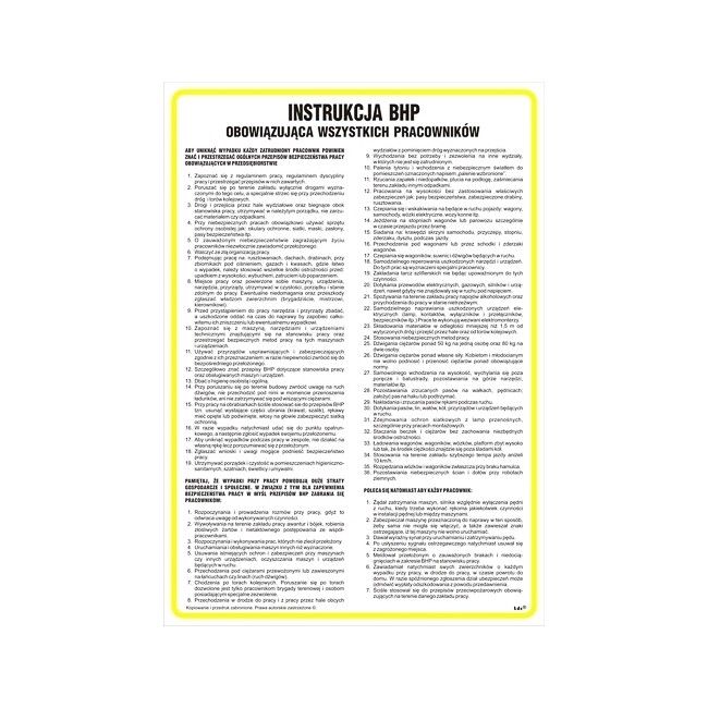 Оплачивая «ЗАГАЛЬНІ ІНСТРУКЦІЇ З ЗДОРОВ'Я ТА БЕЗПЕКИ ДЛЯ ВСІХ ПРАЦІВНИКІВ», вы можете быть уверены, что данный товар из каталога «Предупреждающие таблички» будет доставлен из Польши и проверен на целостность. В цене товара, указанной на сайте, учтена доставка из Польши. Внимание!!! Товары для Евросоюза, согласно законодательству стран Евросоюза, могут отличаться упаковкой или наполнением.