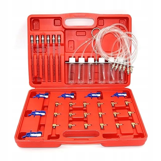 - Детальні вимірювання скляна колба та мірна чашка дозволяють точно діагностувати рівень палива, а тестер зворотного зв'язку виготовлений з високоякісних матеріалів, які є товстими і не Вони легко старіють. Набір може одночасно вимірювати 6 форсунок. Продукт також містить 6 скляних колб, 6 склянок з вимірювальною трубою, що з'єднує 70 см, які кріпиться гачком до алюмінієвого ремінця.