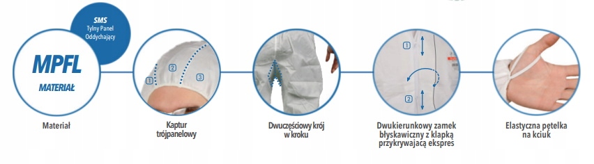 Легкий, дихаючий і міцний, костюм OxyChem C250 забезпечує обмежений хімічний захист типу 5/6. Виготовлений з тканини, ламінованої мікропористою плівкою (MPFL) вагою 63 г/м2. Зовнішній шар: поліетиленова плівка. Внутрішній шар: поліпропіленові волокна, стійкі до проникнення інфекційних агентів. «Дихаюча» панель виготовлена з поліпропіленового нетканого матеріалу Spunbond-Meltblown-Spunbond (SMS) вагою 55г/м2. OxyChem C250 також забезпечує захист від радіоактивного пилу та має антистатичні властивості. Його конструкція розроблена таким чином, щоб забезпечити користувачеві максимально можливий рівень безпеки, ергономіки та комфорту під час роботи. Властивості - Тканина спанбонд ламінована мікропористою плівкою (MPFL) 63г/м2 + (SMS) 55г/м2 "дихаюча панель". - Двостороння застібка-блискавка з клейким клапаном - Виріз з двох частин на промежині - Еластичні манжети, штанини, пояс і капюшон - Еластична петля для великого пальця - Міцні оверлочні шви з внутрішньої сторони