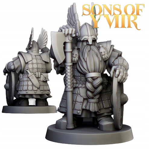 Dwarfs Veterans Core - Shield + Axe x5 Squad - 3D Printing Service Action Figures для RPG або Battle Games