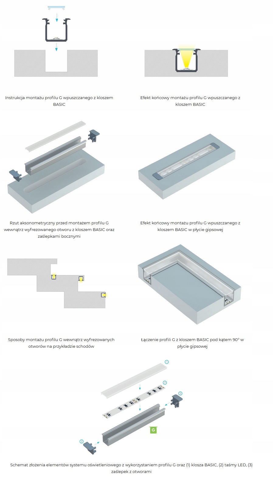 Врізні дюбелі для профілів LUMINES TYPE G. Спеціальні декоративні наконечники для профілю, виготовлені з пластику.