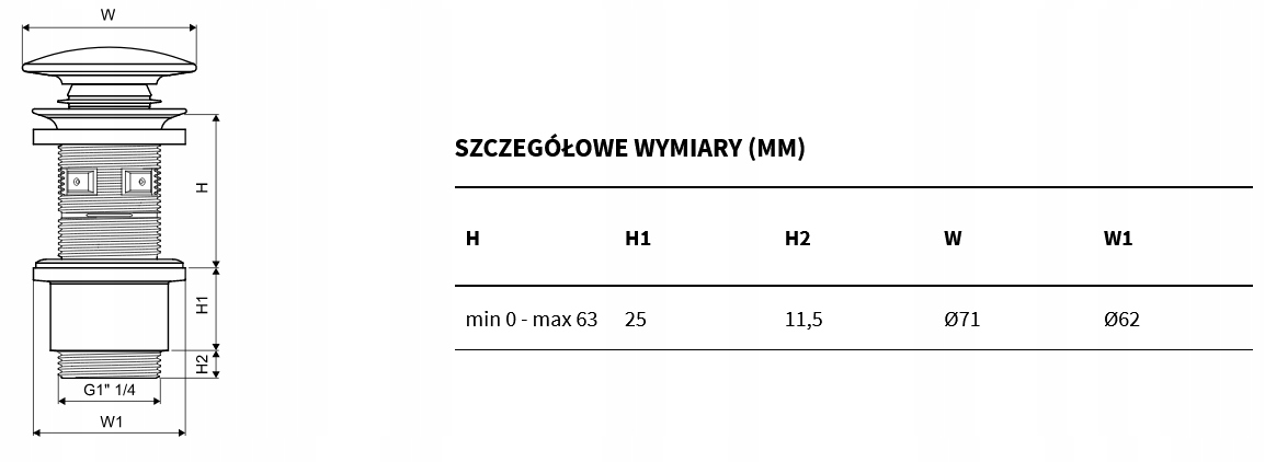 Можливість регулювання - конструкція корпусу пробки дозволяє різання довжини в залежності від типу умивальника та використання дляумивальників як з переносом, так і без