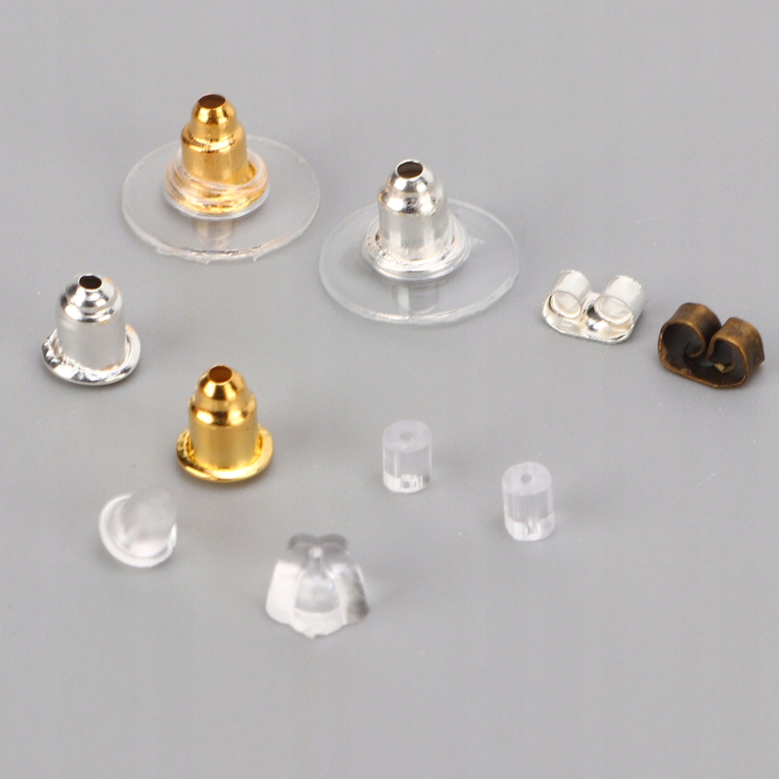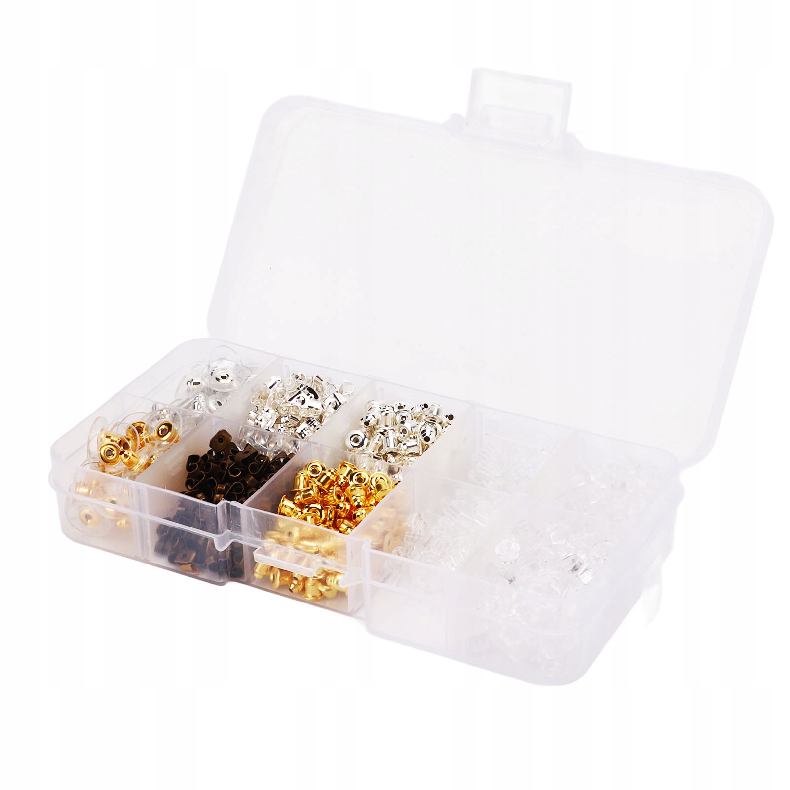• Специфікація: принаймні 120 шт. x силіконові спинки, принаймні 120 шт. x силіконові спинки з квітами, принаймні 120 шт. x прозорі спинки, принаймні 120 шт. x прозорі спинки, принаймні 100 шт. x срібні куленепробивні задники, принаймні 100 шт. х золоті куленепробивні спинки не менше 150 шт. х срібні спинки у формі метелика не менше 150 шт.