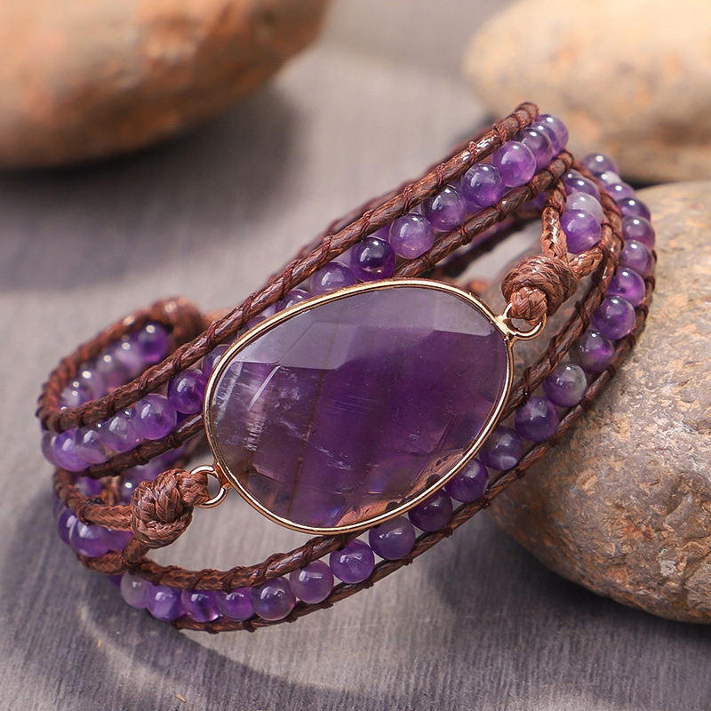 Tibetan wrapped hand-made bracelet made of natural stones Amethyst and Craft and string