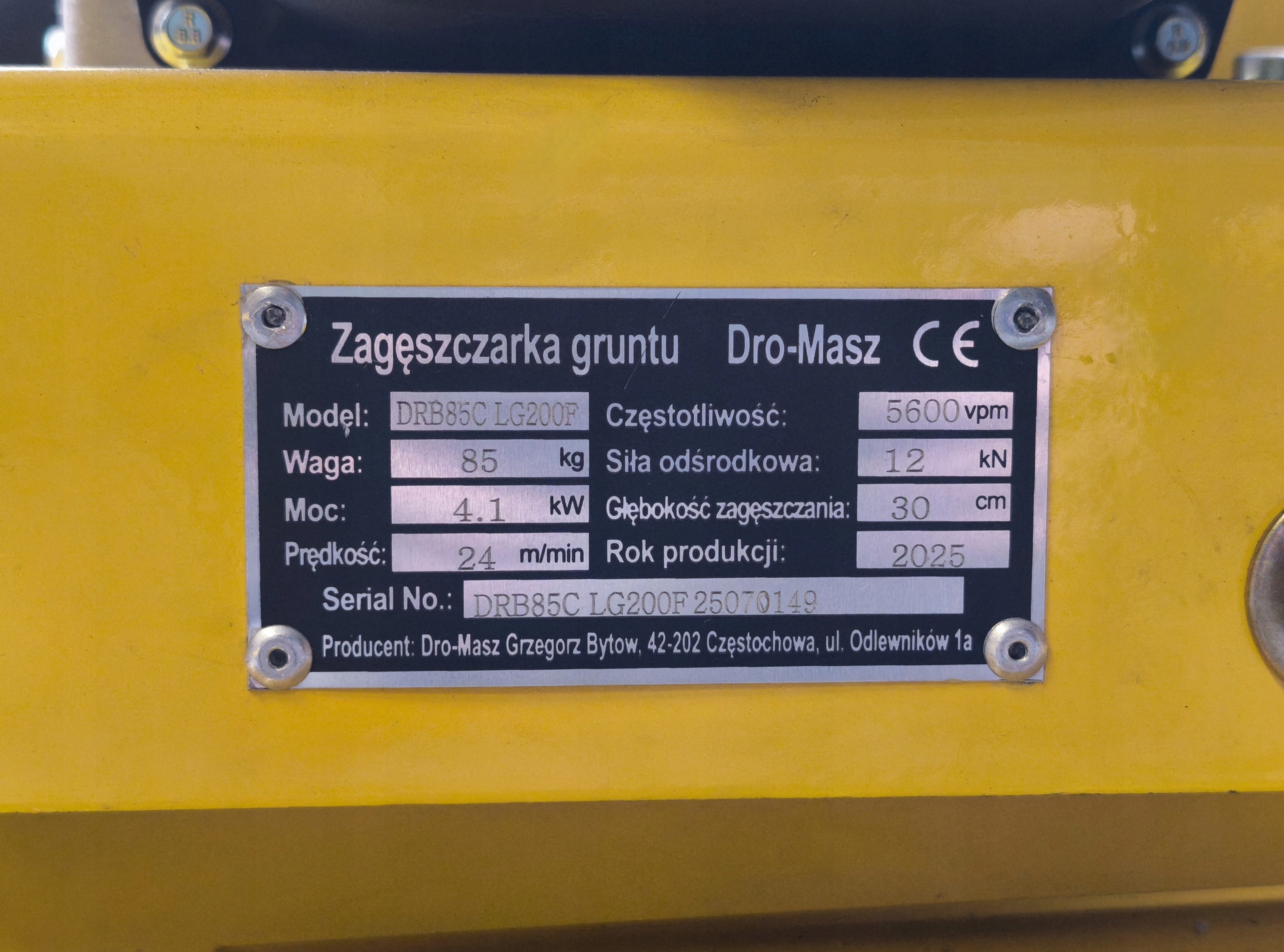 У компактор Dro-Masz DRB85C ми встановлюємо один із найкращих оригінальних двигунів на ринку, Loncin G200F зі стандартами EURO V.