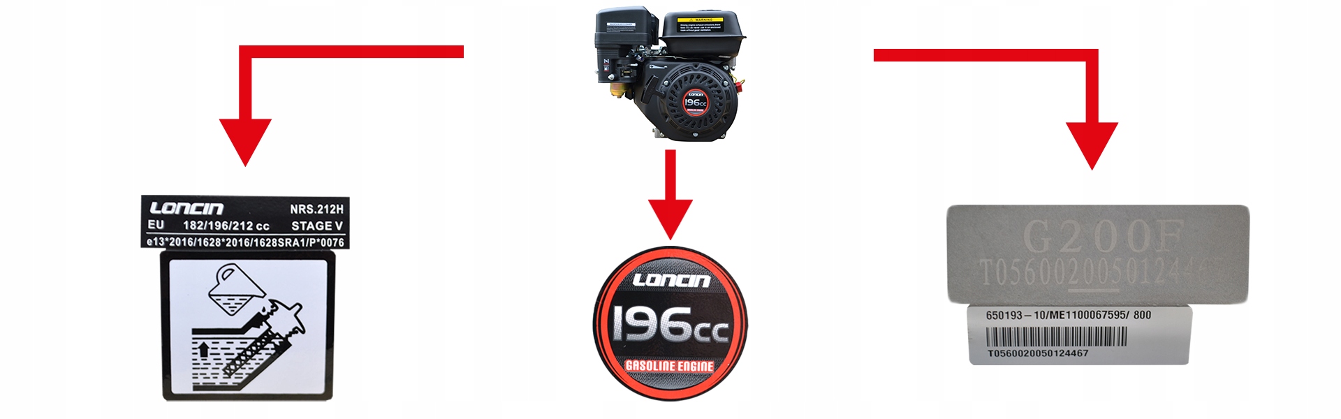 Будь ласка, погляньте нижче на деякі важливі елементи, за якими ви можете легко визначити, що це оригінальний двигун Loncin G200F.