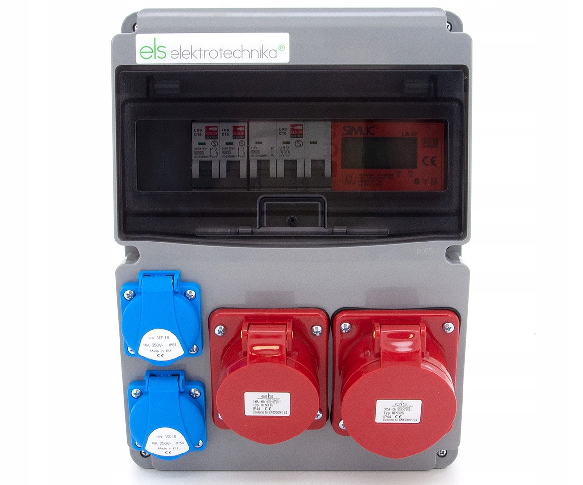 ✅ 1 x кутова розетка 32A 5P 400V IP44, також підключена до лічильника,