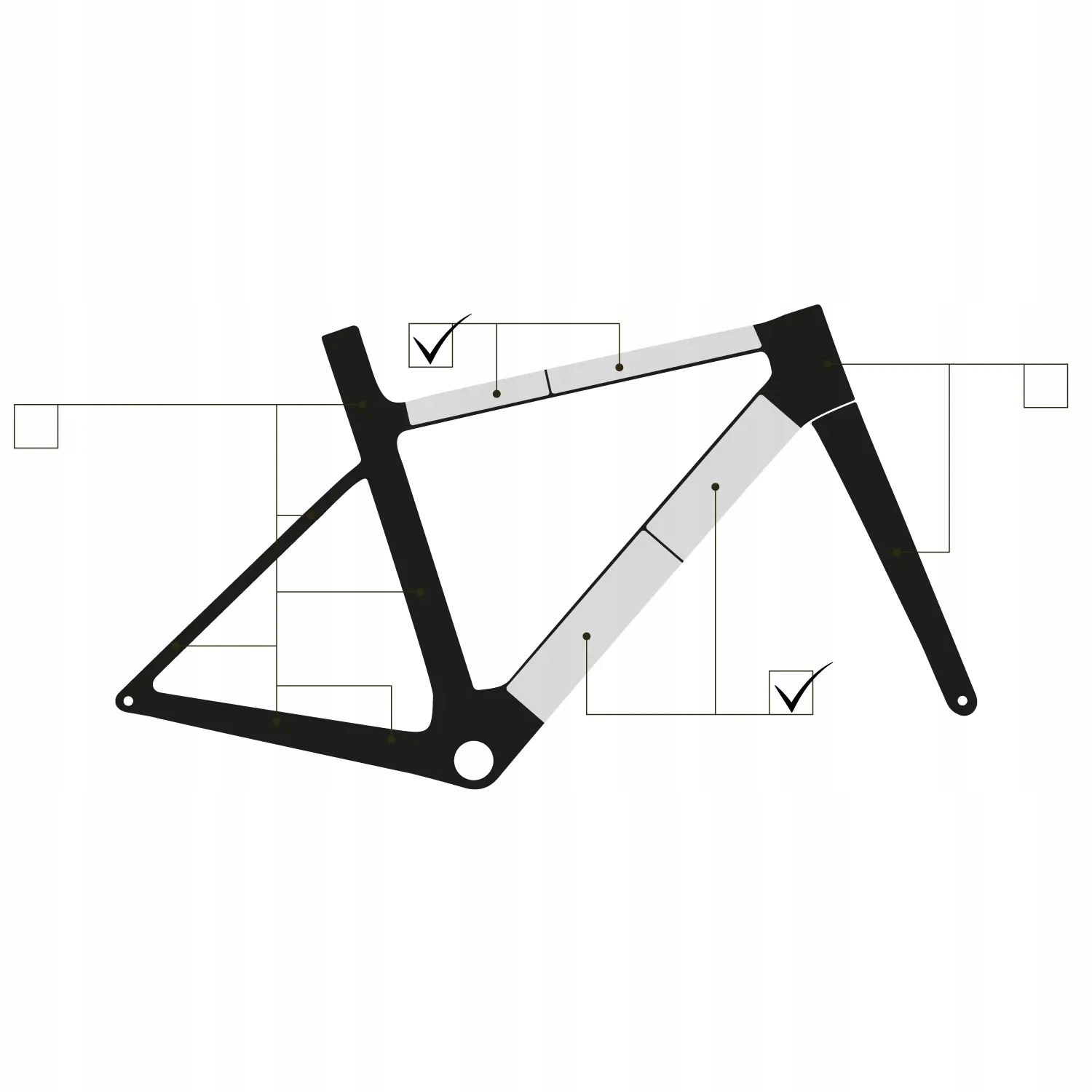 4 -велосипедні захисні плівки є перш за все гарантією ідеального захисту кожного велосипеда. Додатковий набір дозволяє точно закріпити всю верхню та нижню велосипедну раму, а кількість доступних елементів достатньо для покриття найскладніших та найновіших конструкцій. Усі елементи набору були розроблені таким чином, що їх розмір відповідає майже всім наявним велосипедам. У цій маленькій упаковці ви знайдете вплив нашого досвіду та ноу-хау на тему велосипедної плівки. У нас є дорожні набори для таких кадрів Гравія XL.