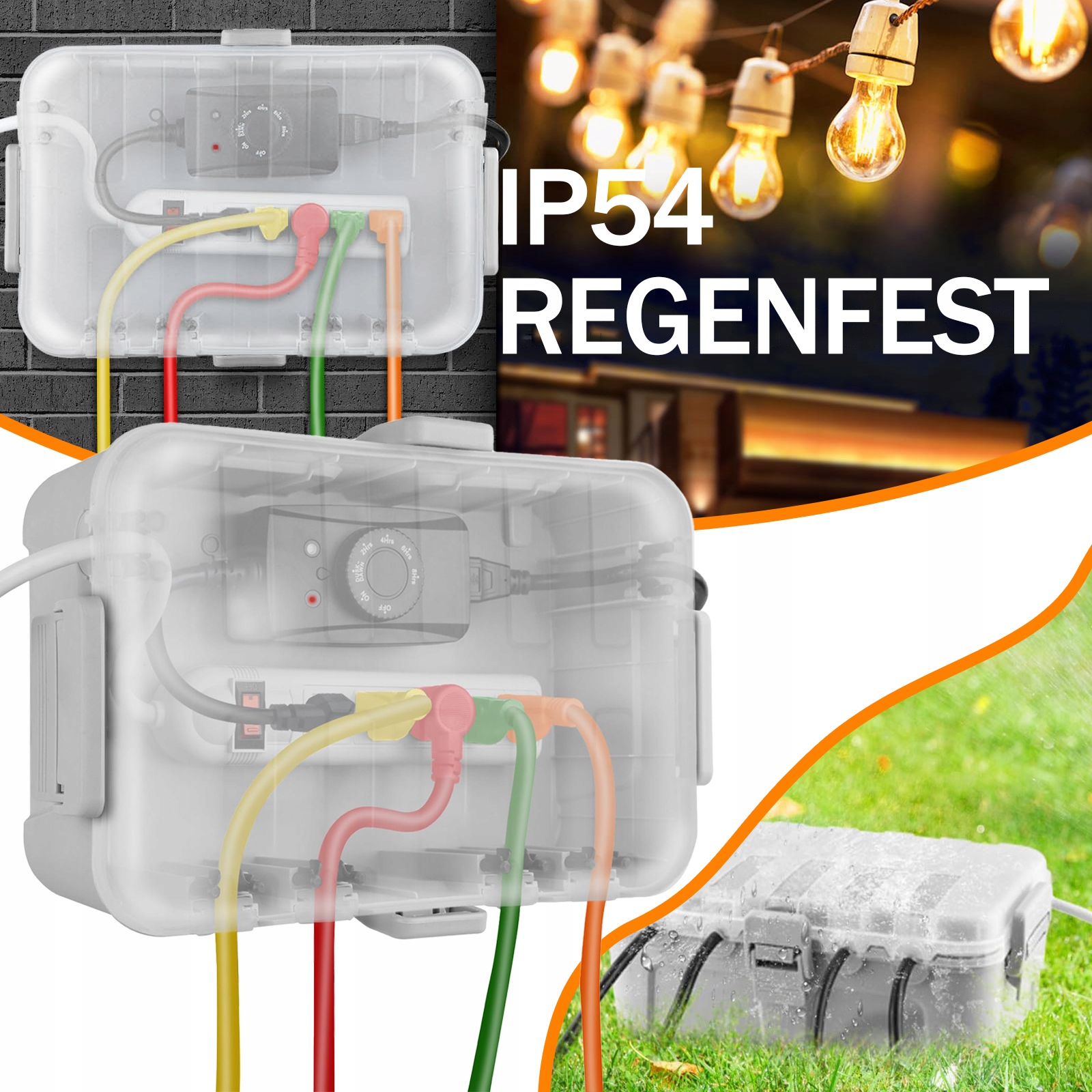 Захисна коробка буде працювати як в комерційному, так і в професійному використанні. Його можна використовувати для садівництва, ставків, садового освітлення або басейнів. Підходить для внутрішнього та зовнішнього використання. Він може легко вмістити різні типи кабелів, перемикачів часу, смужки живлення та радіоприймачів.