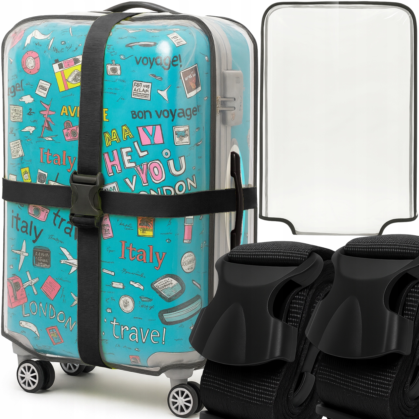 🧳 Набір - захисна кришка + 2x ремінь, що захищає валізу ✈