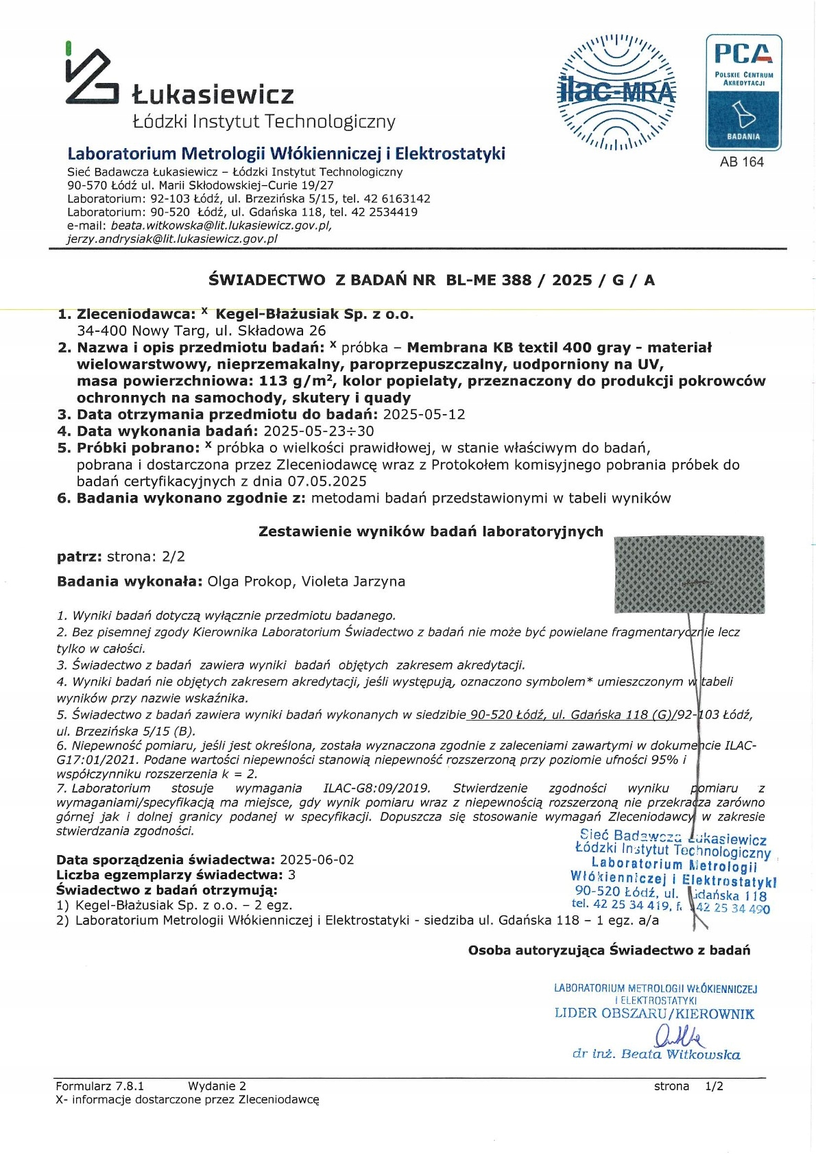 Хороші покриви-Пландекі повинні не лише захищати транспортний засіб від атмосферних опадів, забруднення та сонячного світла, але й повинні бути безпечними. Це те, що є наші обкладинки Kegel-Błażusiak. Наші фахівці проводять довгострокові тести наші обкладинки. Ефективність захисту транспортного засобу за допомогою кришки випадків випробовується проти погодних умов та водостійкості, розряду водяної пари з-під кришки, безпека кришки для фарби покриття транспортного засобу та ефективність встановлення кришки на транспортному засобі в нормальному та екстремальних погодних умовах . Єдині продукти, чиї довгострокові тести закінчилися позитивно, виробляються нашою компанією Кегел-Блужусак.