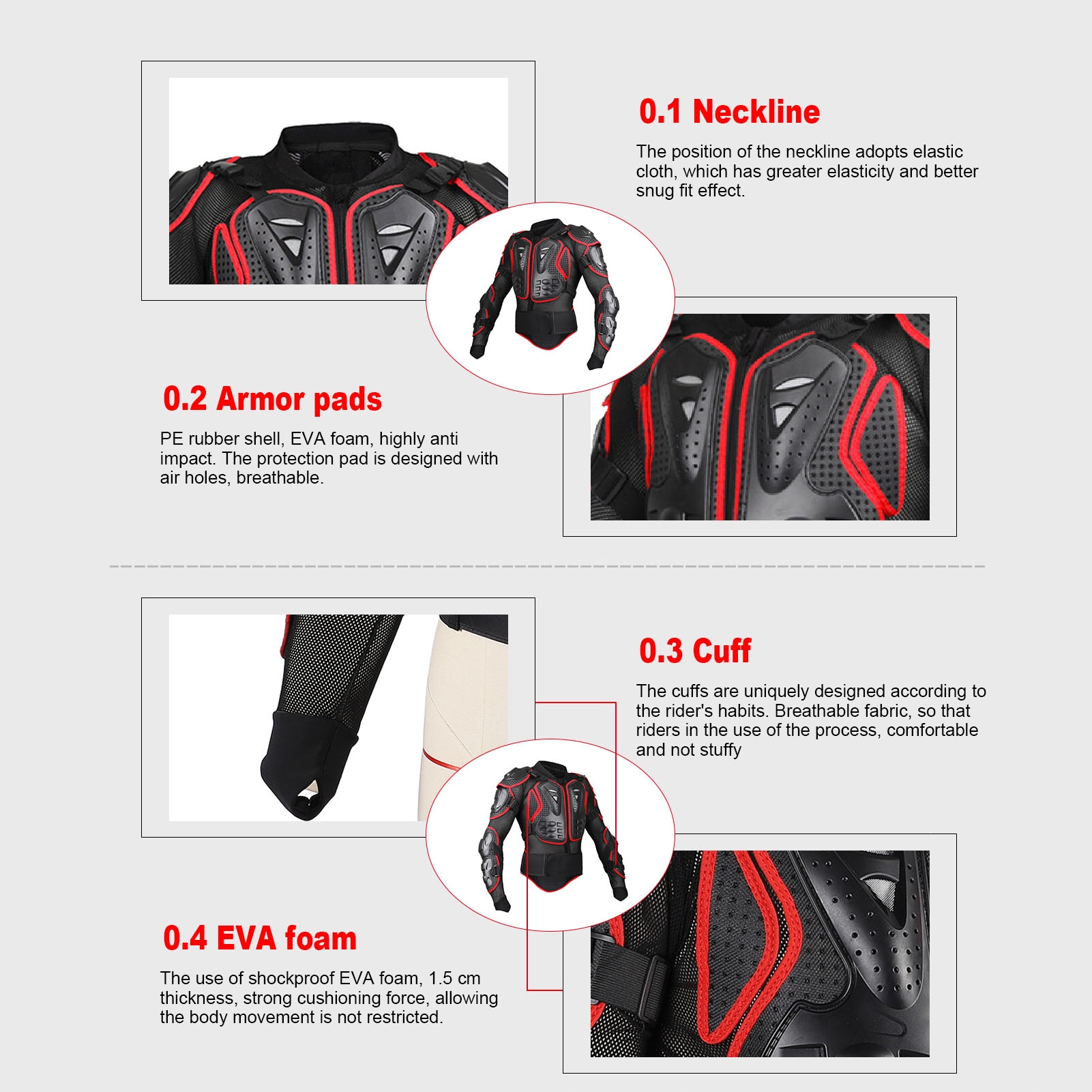 3. Багатофакетний захист: захисник тіл мотоцикла захищає спину, плечі, вівса, передпліччя та груди. Вищевказане захисне обладнання прикріплено до сорочки сітки. Він може забезпечити багатокласний захист під час руху або відпочинку, запобігаючи синамерам, подряпинам або травмам, спричиненим падінням.