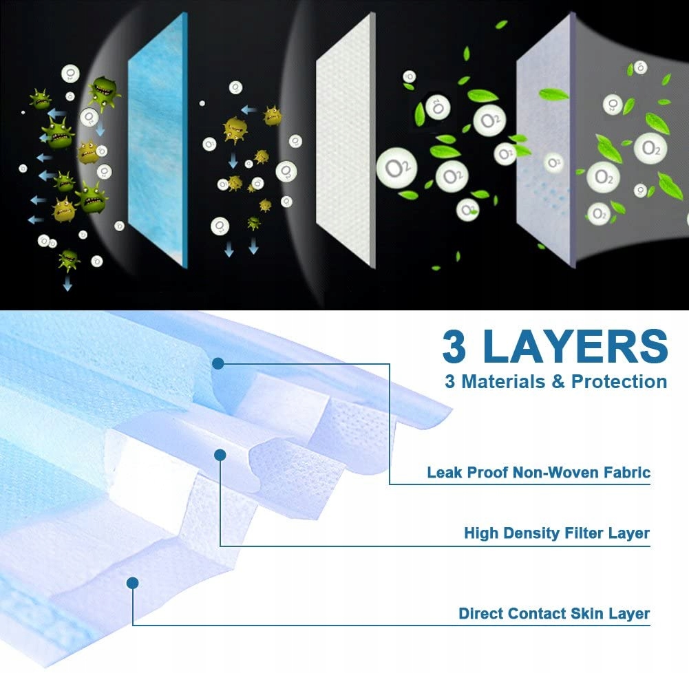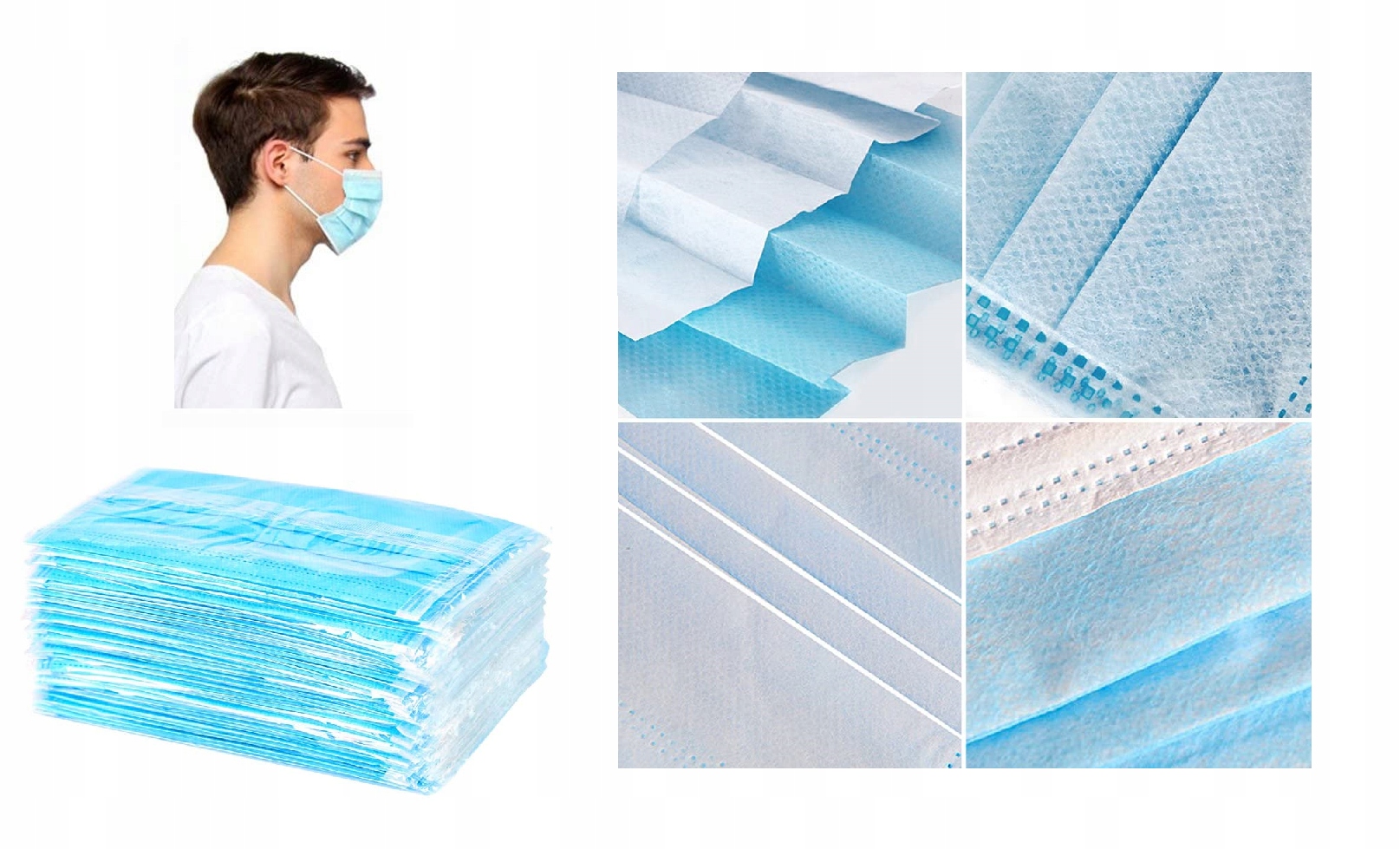 Маска для обличчя фільтруюча з нетканого матеріалу, кріпиться на еластичну стрічку, нестерильна. Рівень фільтрації цієї моделі становить понад 95%. Незважаючи на наявність трьох фільтруючих шарів, маски характеризуються високою повітропроникністю та надзвичайним приляганням до обличчя завдяки спеціальній вставці, що формує ніс. Рекомендується при ризику зараження повітряно-крапельним шляхом. Маски фабрично запаковані в щільну фольгу (поштучно) - це дуже важливо у випадку масок, що продаються "штучно".