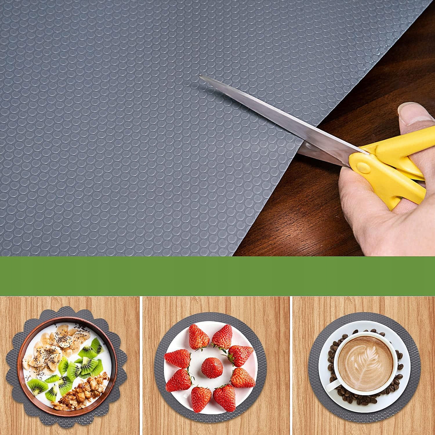 ▪ ▪ ▪ Метро використовується на полицях, холодильниках, ящиках, шафах та сервах. Його можна використовувати як підкладка на полиці, підкладка ящиків, килимок для холодильника, кухонна підкладка для шаф, підкладка шафи, накладка для тарілки та настільна прокладка.