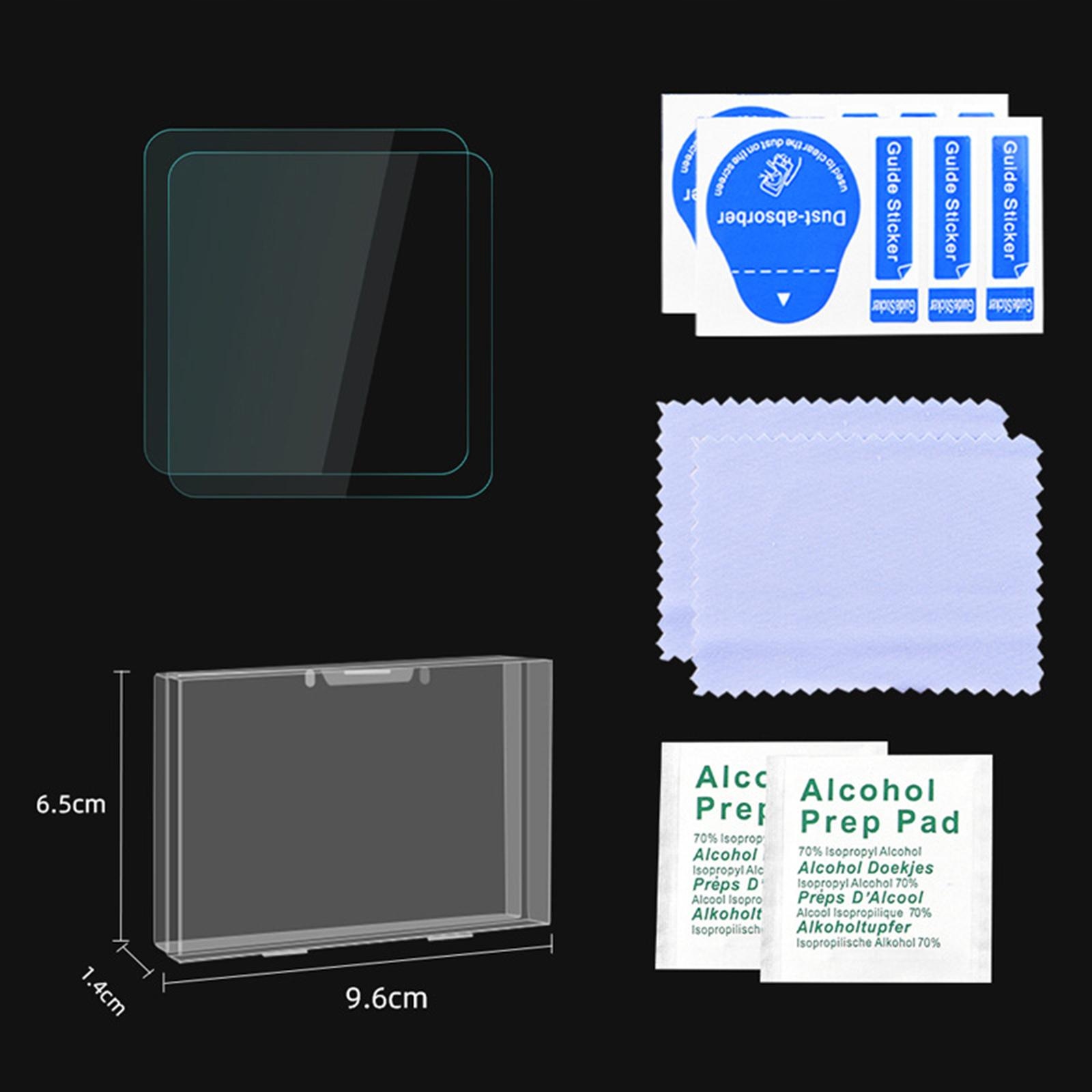 Пакувальний лист: 2x захисна плівка для екрана, 2x волога тканина для чищення, 2x тканина для чищення, 2x наклейка для видалення пилу, 1x коробка.