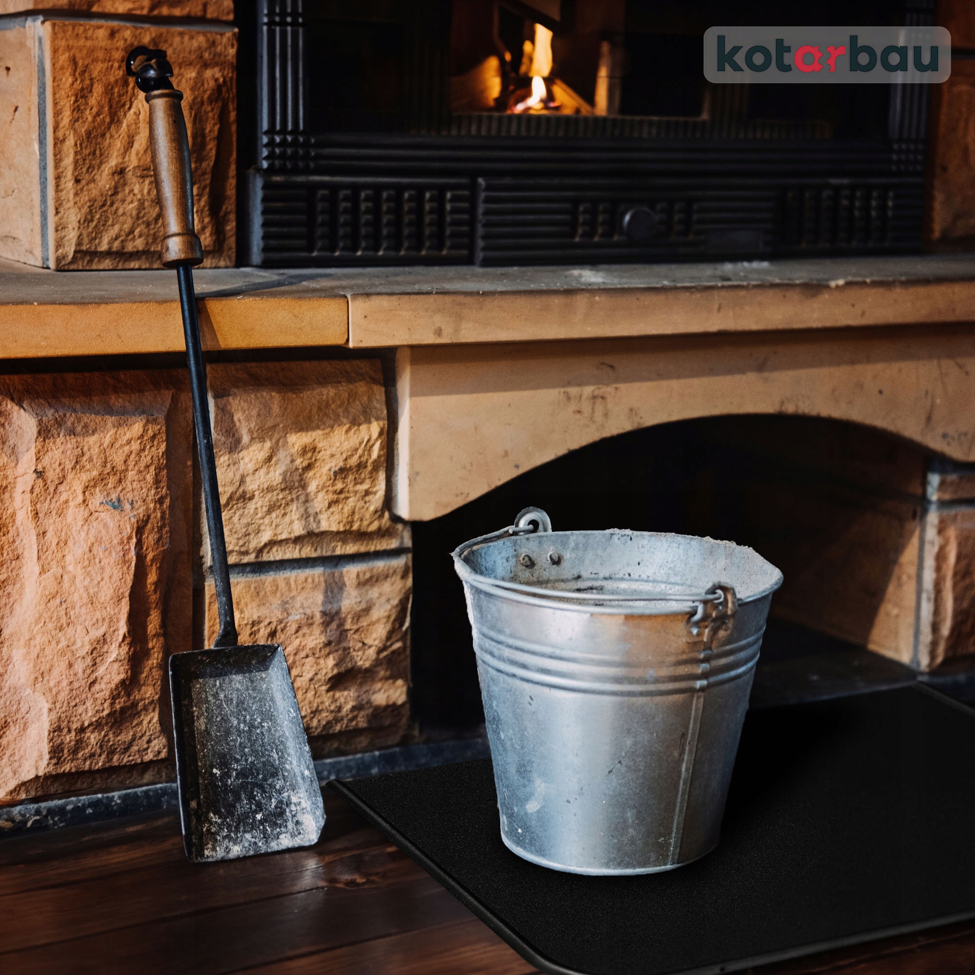 - Покриття для підлоги зі сталі з порошковим фарбуванням має довжину 60 см та ширину 40 см, тому підходить більшість камінів .
