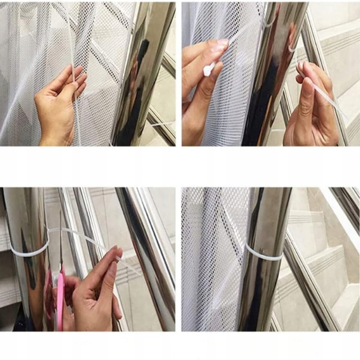 ➡ Продукт оснащений кріпильним набором, який дозволяє швидко і не доводити до кріплення сітки до різних поверхонь. Балустради, сходи, як і балкони. 3 метри ідеально підходить для захисту різних просторів у вашому домі, таких як сходи, балкони або бар'єри.