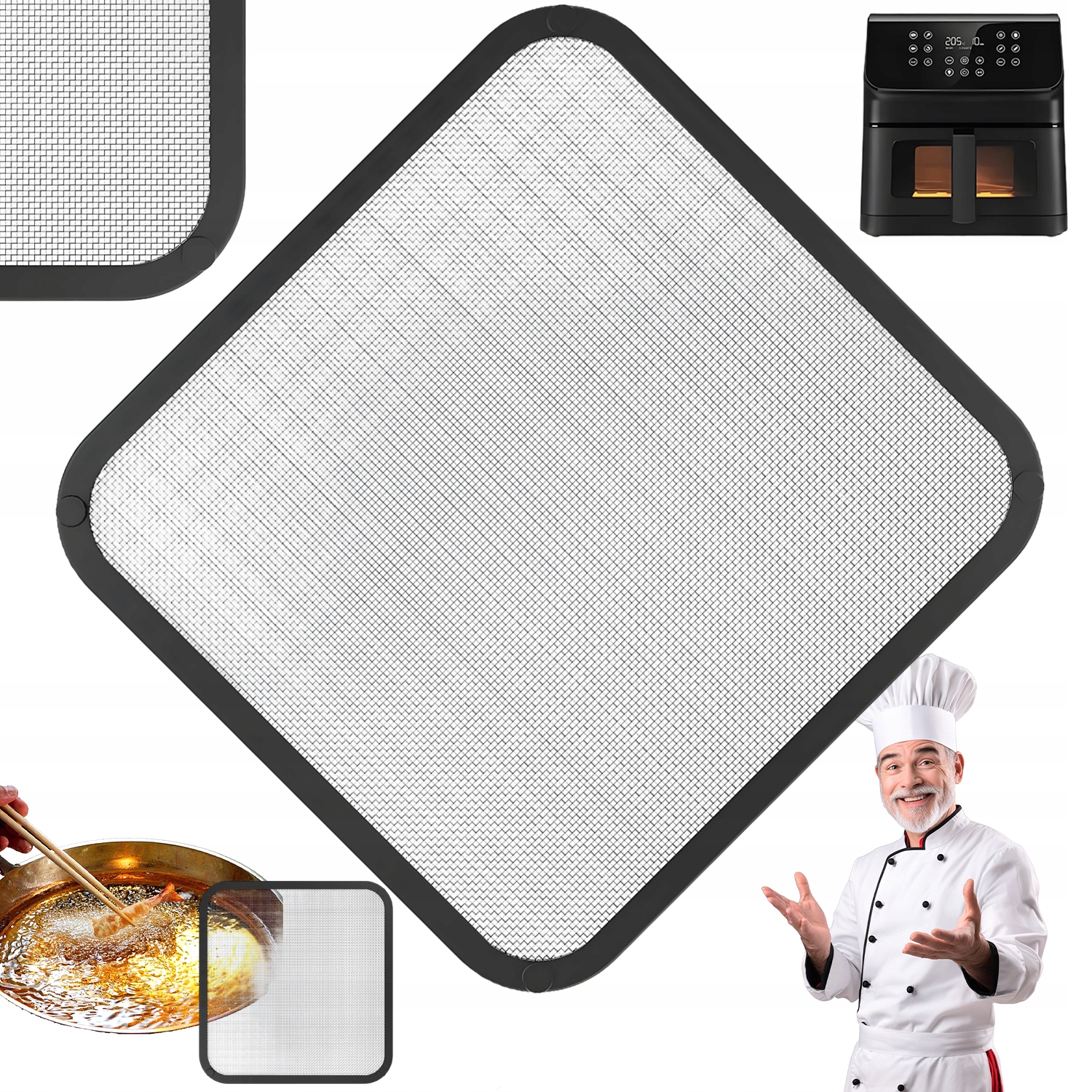 Цей силіконовий захист від бризок є екологічно чистим, міцним і придатним для багаторазового використання. Попрощайтеся з одноразовою харчовою плівкою та виберіть цей екологічно чистий продукт, який не тільки захищає вашу фритюрницю, але й полегшує очищення. Це ідеальний силіконовий аксесуар для формування вашої аерофритюрниці.