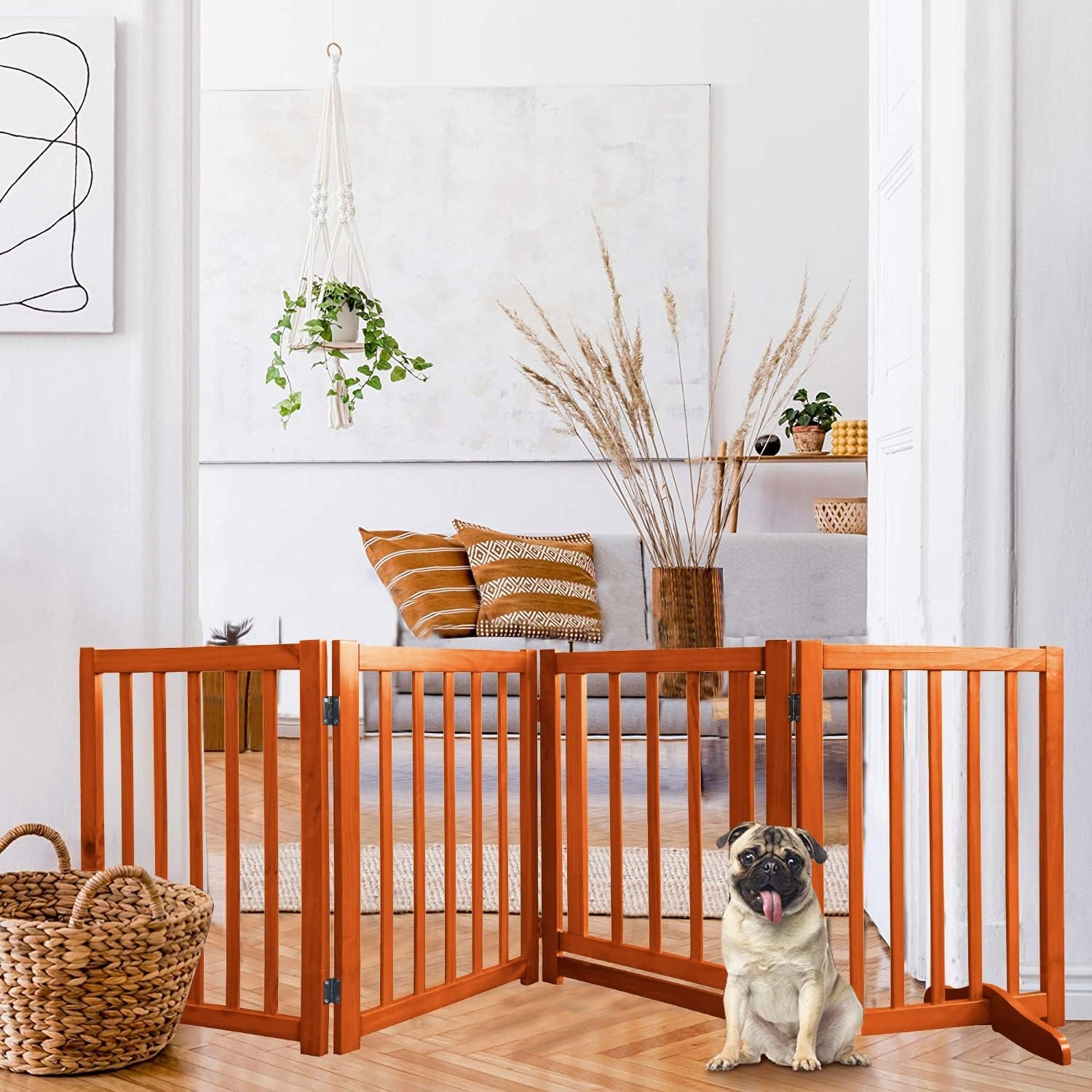 Обмежений ДОСТУП ПО ДОМІ - дерев'яні ворота допомагають вам ефективно і безпечно, обмежте доступ або замкніть свого чотирилапого друга в будь-якій кімнаті в будинку. Наша огорожа для домашніх тварин оснащена дверцятами, що замикаються, що дозволяє вашим домашнім тваринам легко отримати доступ, не пересуваючи всю огорожу.
