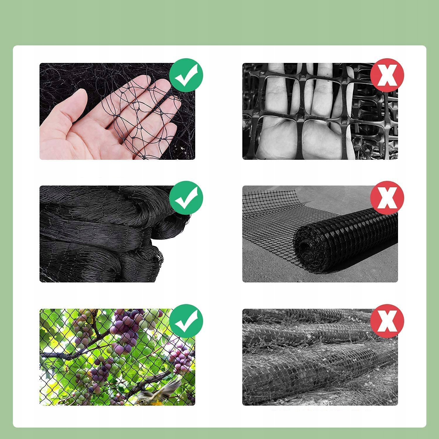 🥦- використовується в сільськогосподарських культурах для захисту садів, виноградників та овочів від птахів.