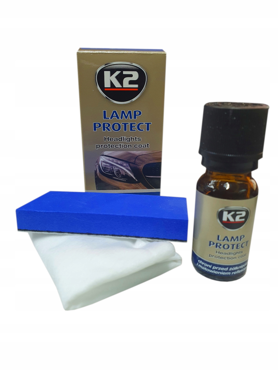 K2 LAMP PROTECT - довговічне захисне покриття, призначене для фар із пластику та скла. Запобігає пожовтінню та тьмянінню ламп. Захищає від шкідливого впливу УФ-променів. Зберігає поверхню лампи чистою, відштовхуючи воду та полегшуючи видалення бруду. Захищає фари від легких подряпин.