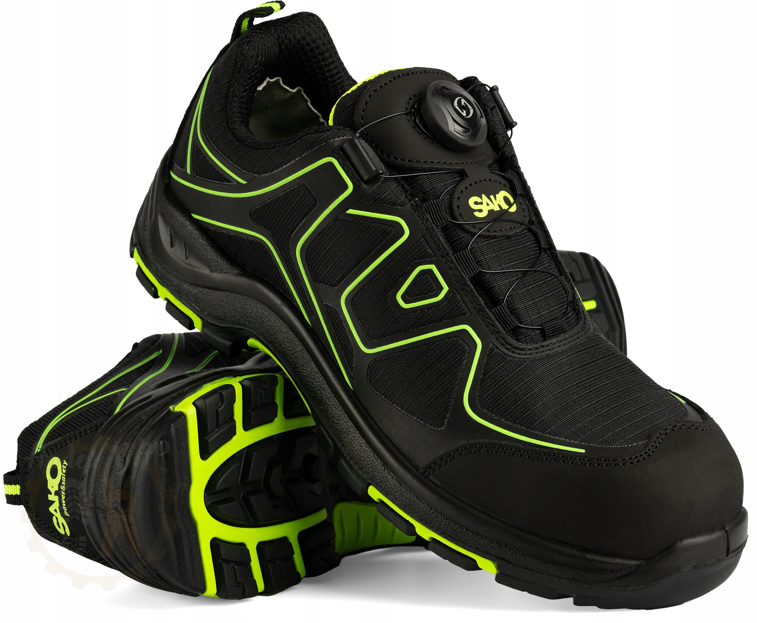 Взуття робоче BOA SAKO S1P преміум класу, що забезпечує високий комфорт використання. Взуття має систему швидкої шнурівки BOA, просто поверніть кільце. Взуття має композитний носок, що робить його легким і зручним. Вони відрізняються надійною роботою та довговічністю. Верх взуття виготовлено з сітки KPU, яка забезпечує чудову вентиляцію та довговічність пошкодити