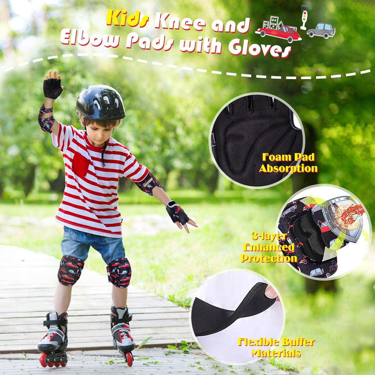 ✅ Дуже гнучкі протектори для ліктів і колін з регульованою застібкою, завдяки якій ваші діти зможуть вільно насолоджуватися спортом.