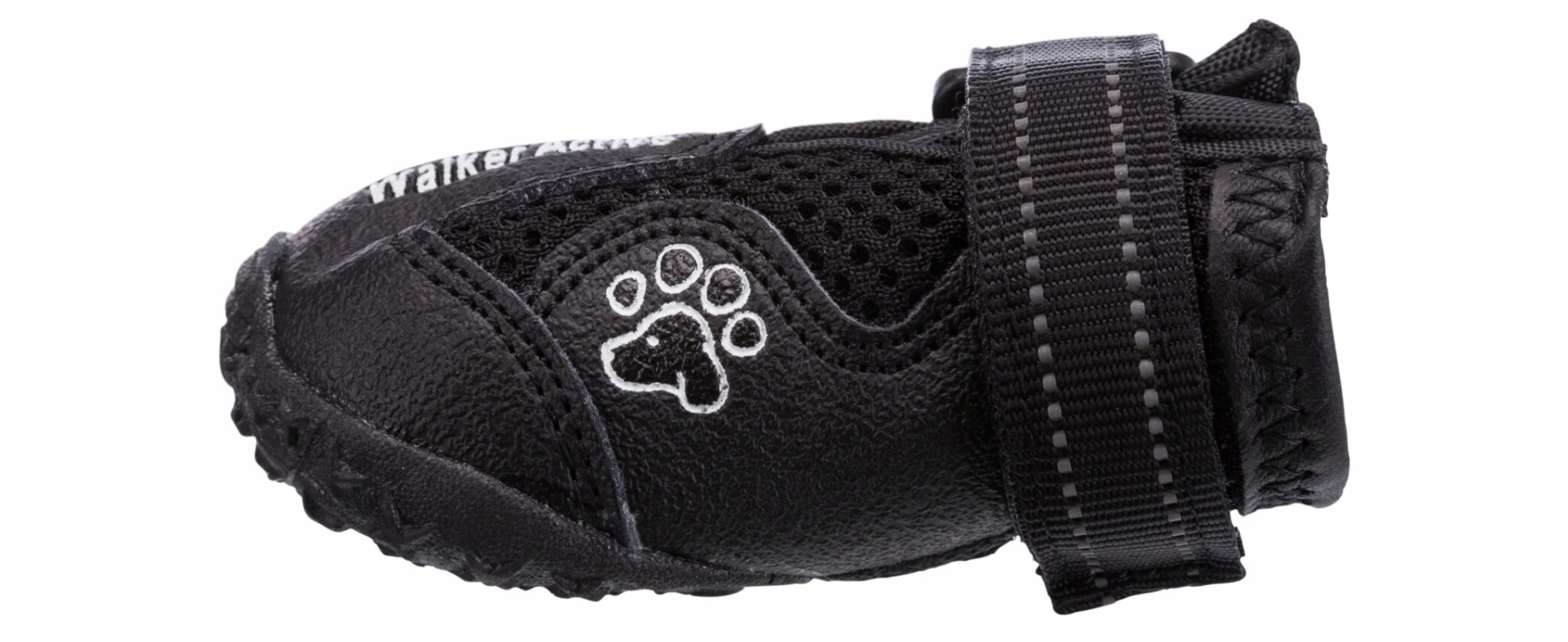 Стійка підошва b>виготовлений з ПВХ забезпечує високе зчеплення. Крім того, черевики застібаються двома стрічками-липучками, що значно полегшує їх надягання вашій собаці та ускладнює зісковзування взуття під час прогулянки. Більше того, ремінці на липучках містять відбиваючі смужки, за якими вам буде легше помітити свого улюбленця в темряві.