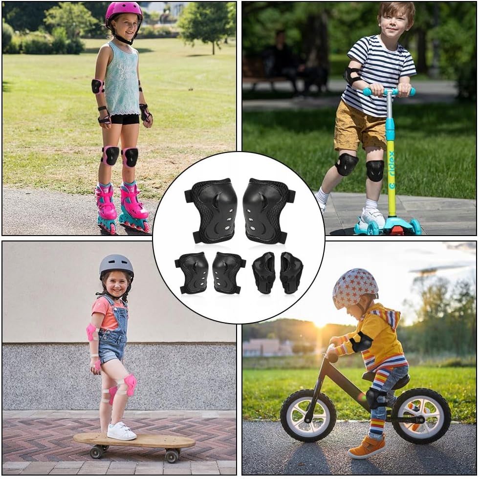 Забезпечте безпеку вашої дитини під час їзди на велосипеді , роликові ковзани, скейтборд або скутер ! Набір захисників ефективно захищає коліна, лікті та зап’ястя від травм, гарантуючи комфорт та свободу руху.