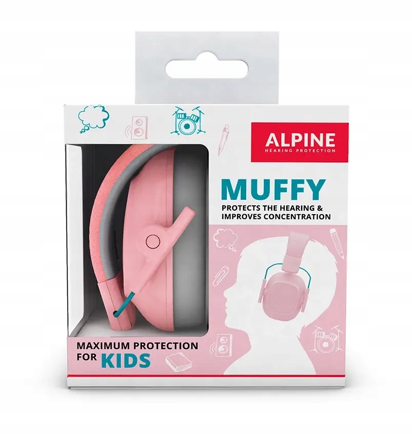 Alpine Muffy Kids — це маленькі навушники, розроблені спеціально для дітей віком від 5 до 12. Навушники використовуються в галасливих середовищах, таких як вечірки, паради, феєрверки, концерти, автомобільні та мотоциклетні перегони. Дитячі беруші Alpine Muffy Kids пригнічують навколишній шум до 25 дБ.