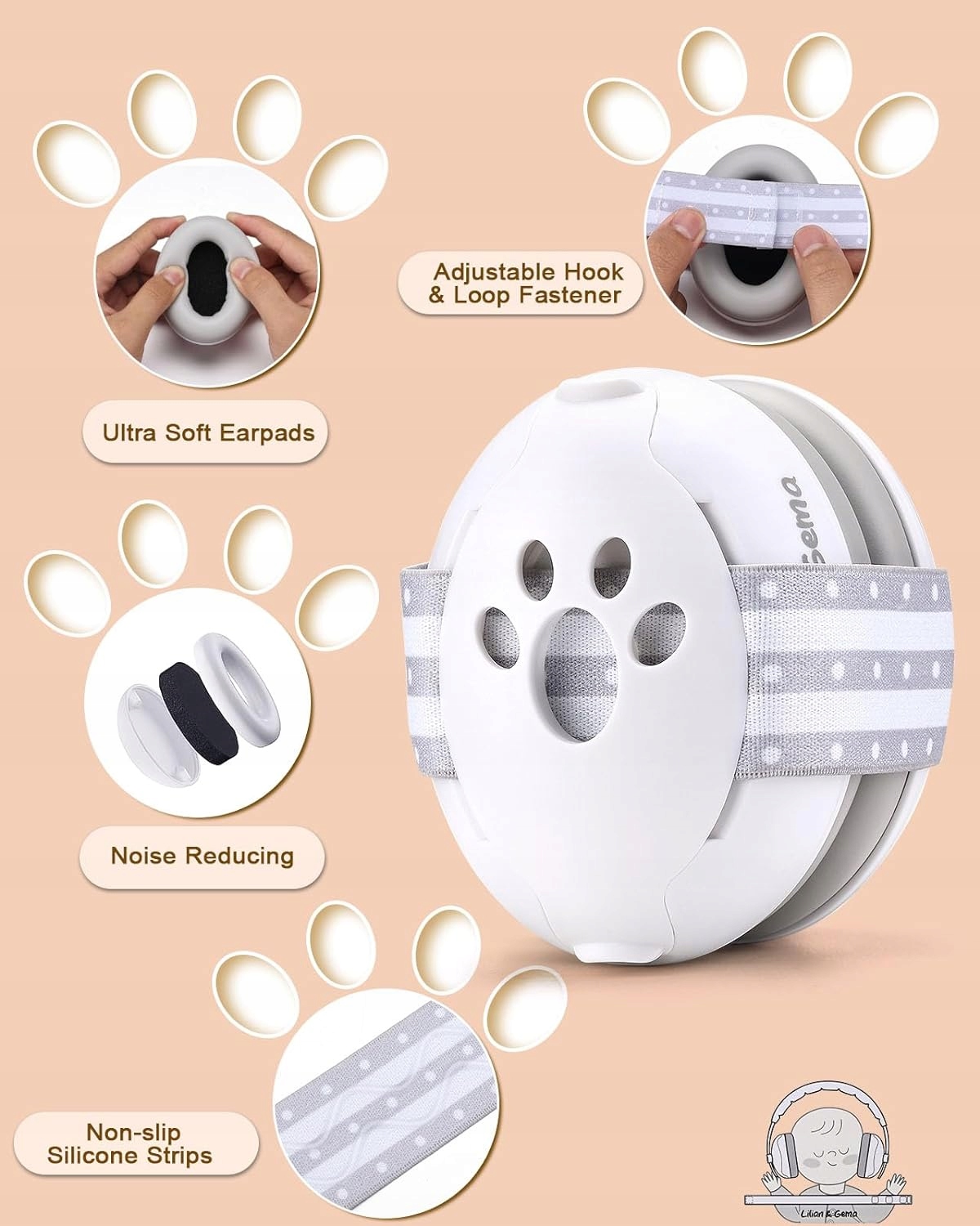 ✔ Ці навушники, що захищають від немовлят, дуже прості у використанні. Просто прикріпіть вушні прокладки до смуги, надягайте набори для голови дитини і відрегулюйте її на липучках. Після виходу з області ризику просто вийміть навушники і згортайте смугу, щоб вона входила в сумку для зберігання.