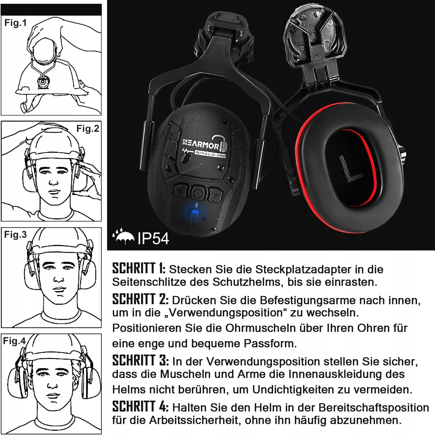 Просте встановлення та комфорт протягом усього дня:Система кріплення дозволяє швидко прикріпити навушники до більшості захисних шоломів. Регульована конструкція та м'які подушки забезпечують комфорт навіть після багатьох годин використання. Коли ви закінчите роботу, навушники можна скласти та зручно зберігати.