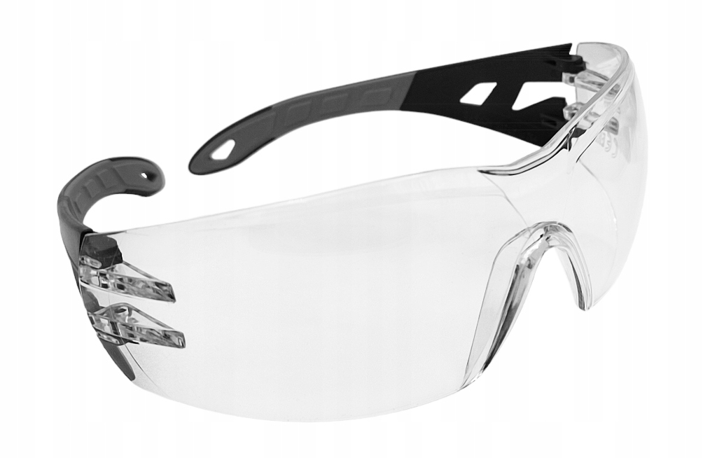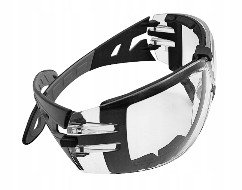 КОНСТРУКЦІЯ: прозорі полікарбонатні лінзи, бісферичні лінзи з великим полем зору, оправа з м’якою обробкою та регульований ремінець гарантують ідеальне прилягання до будь-якої форми обличчя, м'які вушні раковини, захист надбрівної дуги