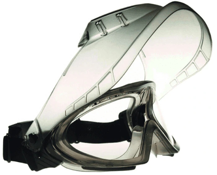 - Поворотний прозорий полікарбонатний щиток для обличчя з чудовою непрямою вентиляцією/3 каналами. Стійкий до подряпин, ударів середньої енергії та високошвидкісних частинок при екстремальних температурах. Конструкція окулярів із щитком дозволяє використовувати окуляри і респіраторну маску. Набір 2 в 1 забезпечує повний захист там, де очі та обличчя піддаються впливу пилу, пилу, хімічних бризок, твердих речовин і рідин. Використовується у важкій та переробній промисловості, фармацевтичній промисловості, хімічній промисловості та у видобутку нафти та газу.