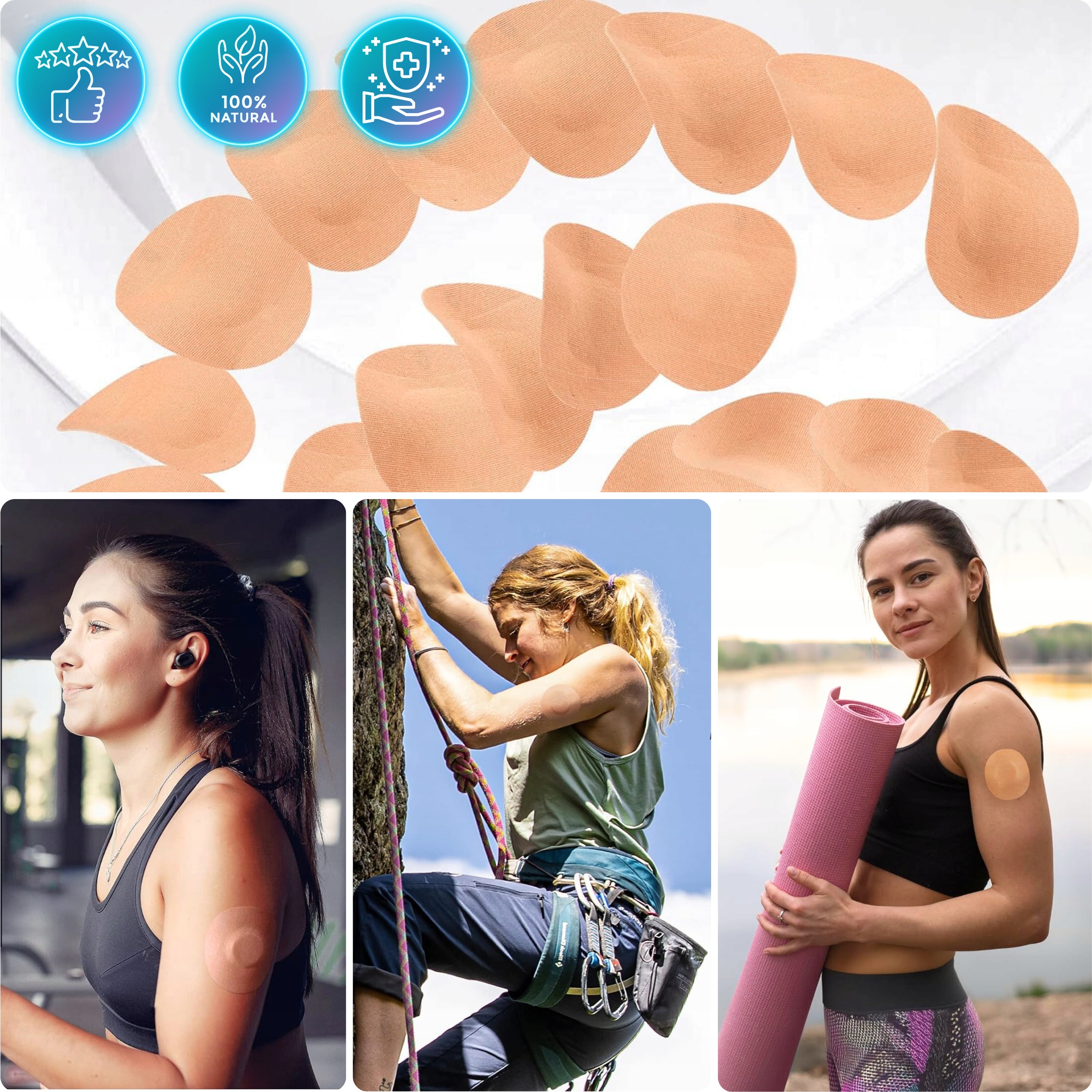 Захисні патчі — це невеликі клейкі стрічки діаметром прибл. 7,5 см, виготовлені на основі кінезіологічної стрічки REVITY RECOVERY TAPE. Використовуються для захисту сенсора під час повсякденної діяльності, коли ви не хочете, щоб ваш датчик був на виду, і під час занять спортом, для захисту.