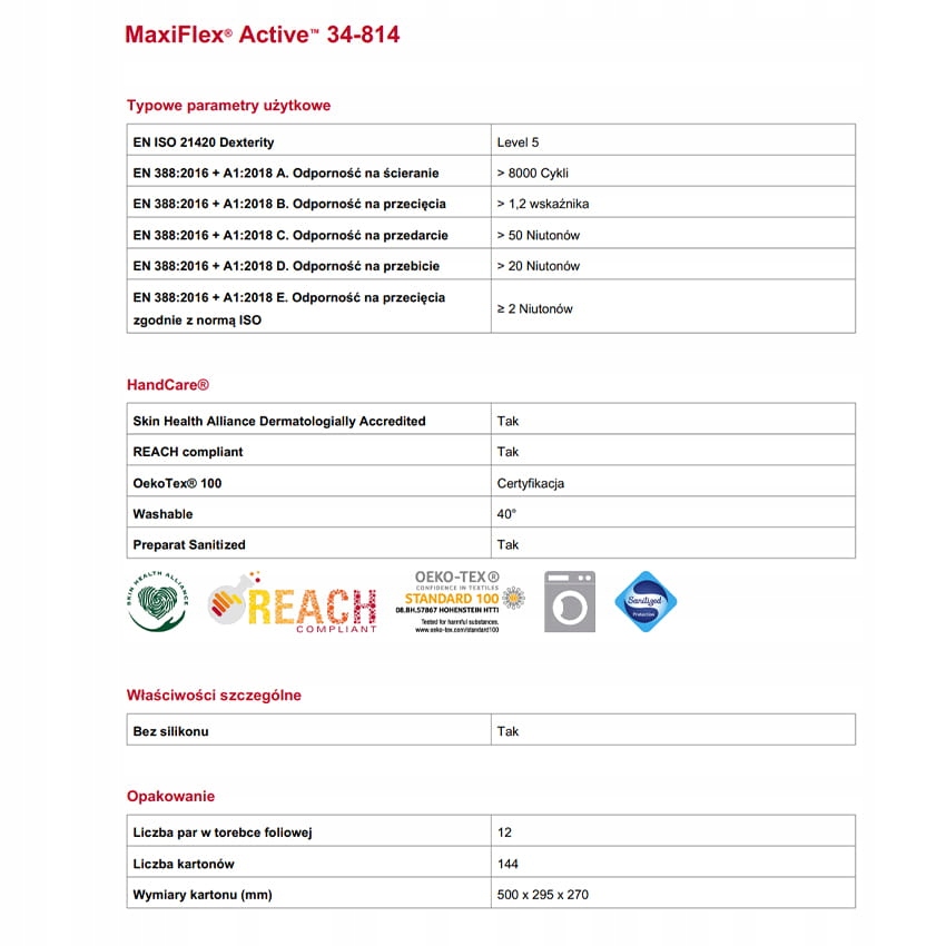 ЗАХИСНІ РУКАВИЧКИ ATG MAXIFLEX ACTIVE РОЗМІР 7 - S ПАРА БЕЗ СИЛІКОНУ