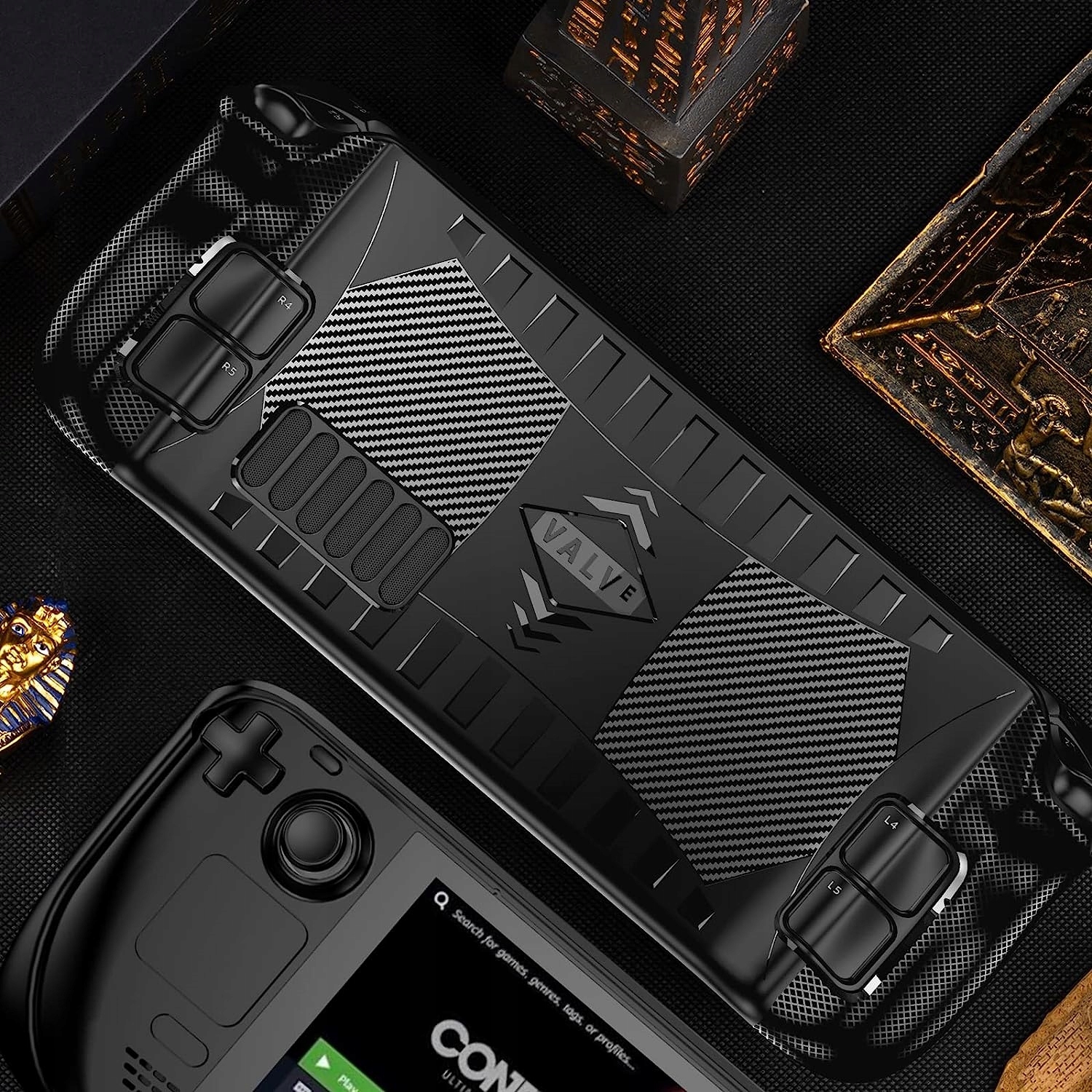 ✅ Карбоновий чохол для консолі Steam Deck є практичним і ергономічним захисне пакування, яке забезпечує комфортне використання пристрою під час гри.