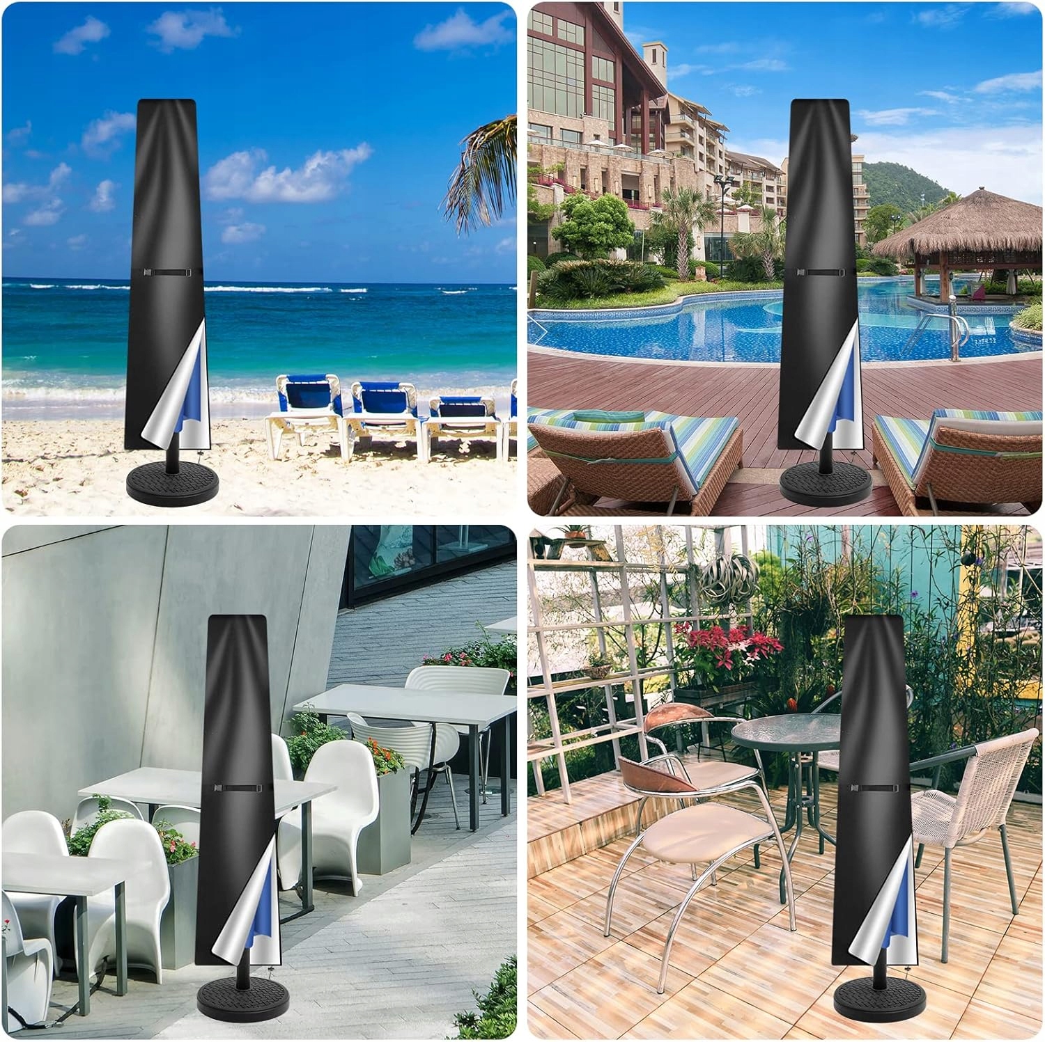 Ідеальний розмір: з розмірами 190 см (висота) x 30 см (вгорі)/ 50 см (знизу), ця кришка парасольки підходить до круглих або квадратних параз з діаметром 3 м.