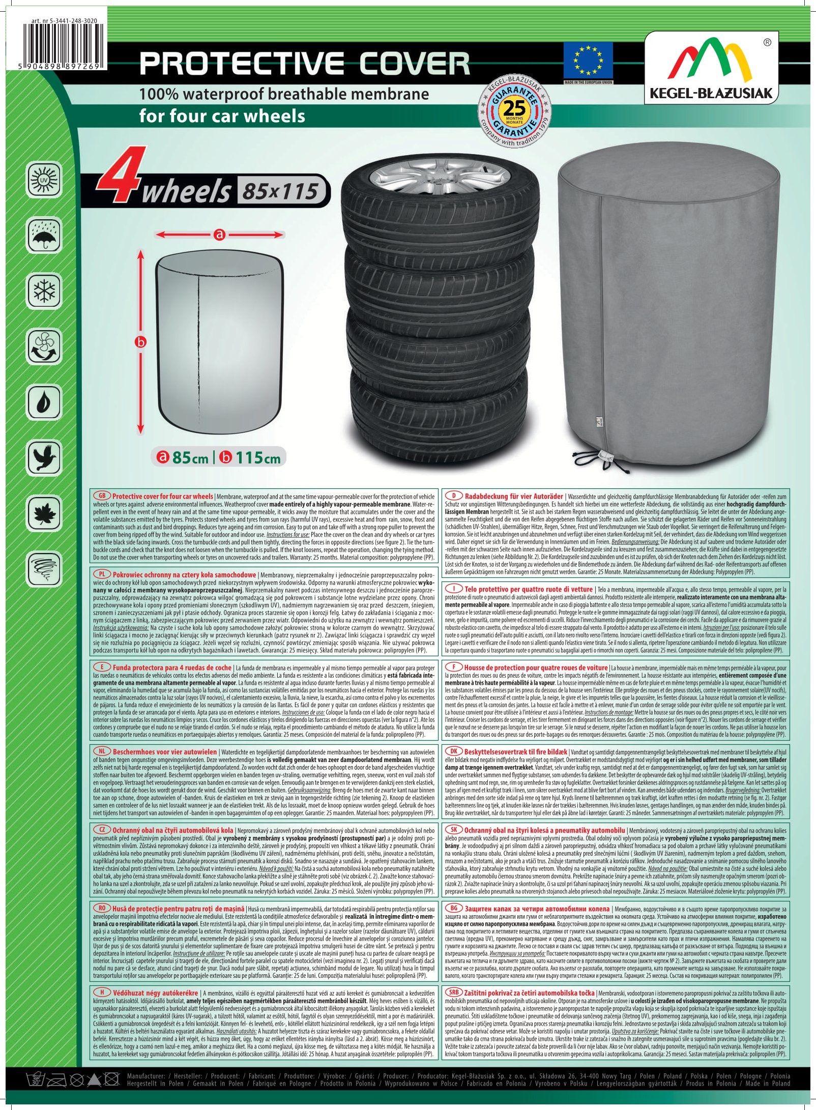 Хороші брезентові чохли повинні не тільки захищати автомобіль від опадів, забруднень і сонячних променів, а й бути безпечними. Це наші брезентові чохли Kegel-Błażusiak. Наші фахівці проводять тривалі випробування брезентових чохлів. Випробовується ефективність захисту автомобіля брезентом від погодних умов, а також його водонепроникність, видалення водяної пари з-під покриття, безпека покриття для лакофарбового покриття автомобіля та ефективність кріплення покриття до автомобіля в нормальних і екстремальних погодних умовах. Наша компанія Kegel-Błażusiak виробляє лише продукти з позитивними довгостроковими тестами.