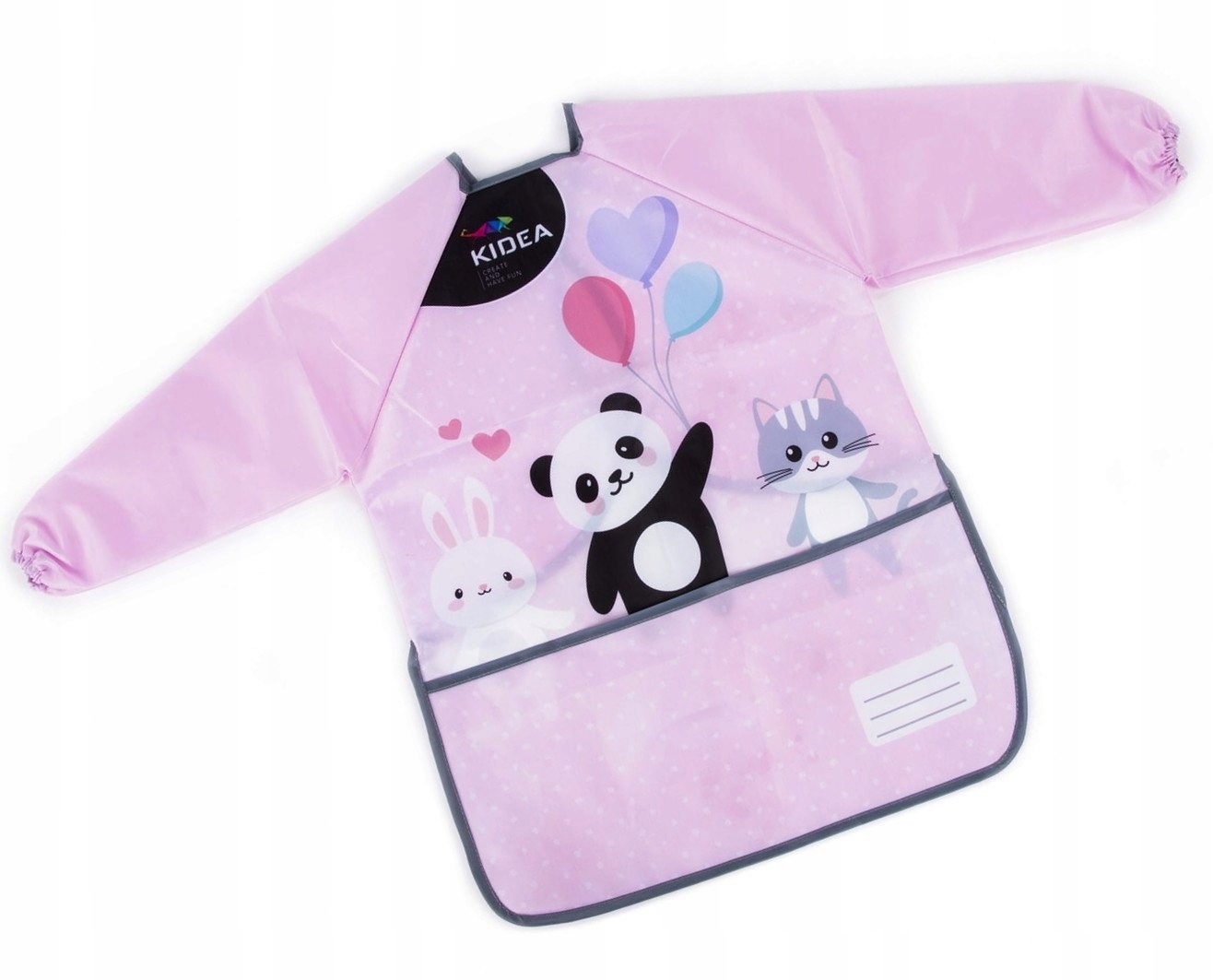 Фартушок для творчості в пастельно-рожевому кольорі з милою пандою, зайчиком і кошеням.
