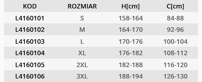 фартух, виготовлений з матеріалу з вагою 260 г/м2 (35% бавовни та 65% поліестеру). Він має 5 кишень, включаючи два високоякісні преси. Крім того, фартух оснащений ключовим оком. Подвійні шви. Регульовані манжети, застебнуті. Фартух має ідентифікаційний танк. Одяг має сертифікат CE та стандарт EN ISO 13688 і є в першій категорії засобів для перенесення захисту. Пояс: 92-96 см