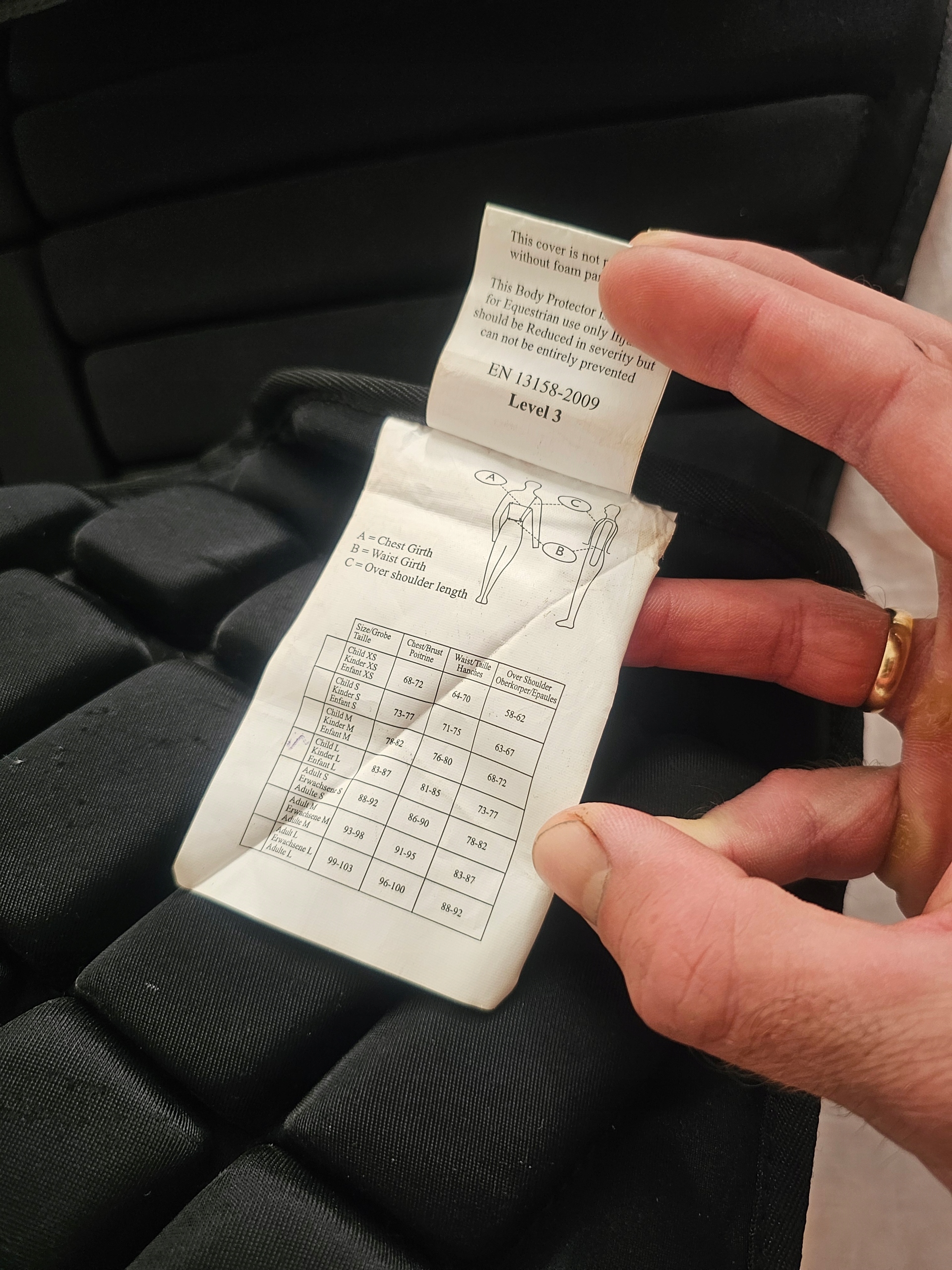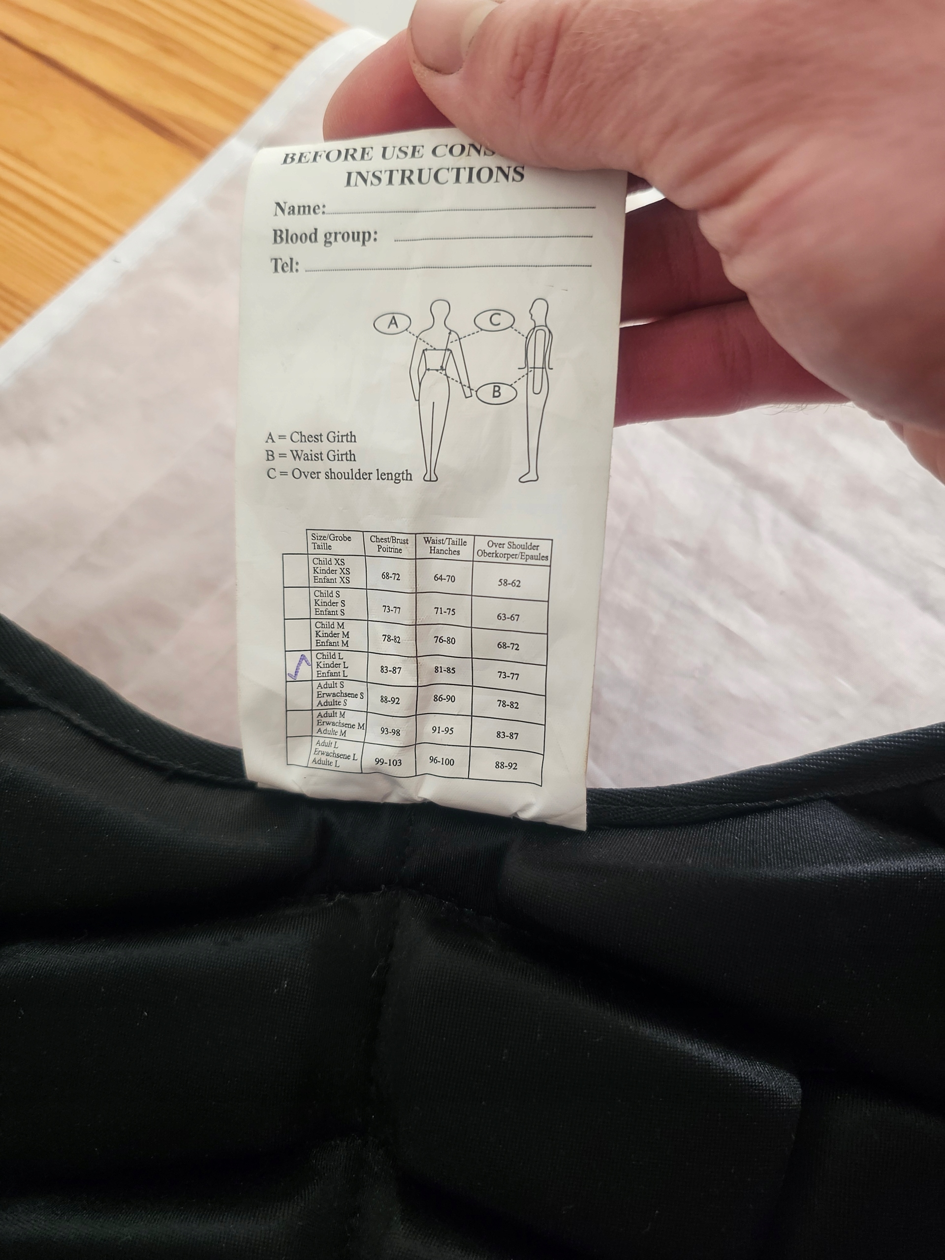 Жилет захисний для верхової їзди для дитини розмір Child L. Практично не використовувався. Він не пошкоджений і не вицвілий. Колір чорний.