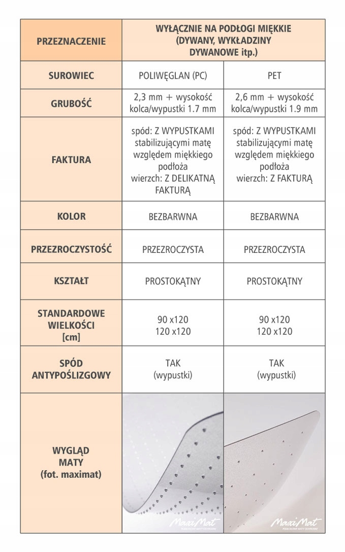 Нижче наведено порівняння всіх типів килимків для стільців, які ми пропонуємо: