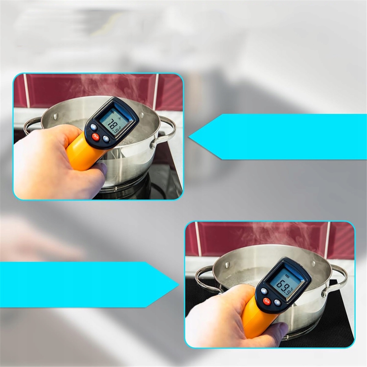 🥩🥩【Легко чиститься】 Силіконовий індукційний килимок багаторазовий і його можна мити водою. Якщо утворилися стійкі жирні плями, ретельно очистіть їх тканиною, змоченою невеликою кількістю миючого засобу, або помістіть у посудомийну машину.