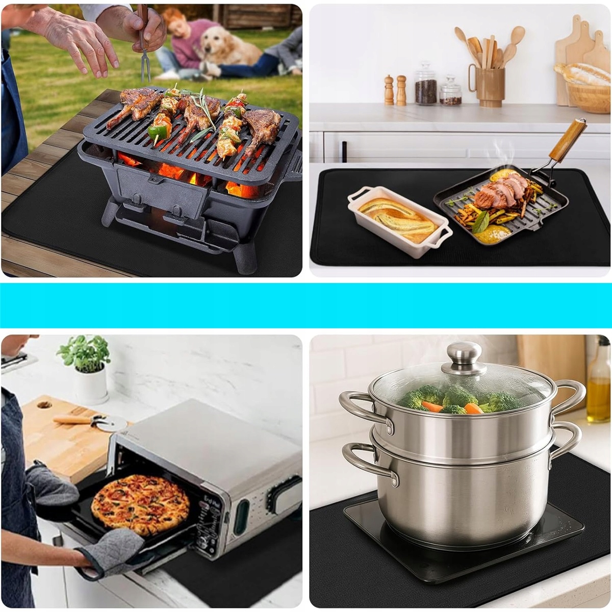 🥩🥩【Універсальне використання на кухні】Служить для захисту поверхні, напр. як чохол для індукційної плити, килимок для столу, підкладка для приладів, чохол для фритюрниці або підкладка для стільниці. Його можна адаптувати до розмірів духовок, індукційних плит та інших пристроїв.
