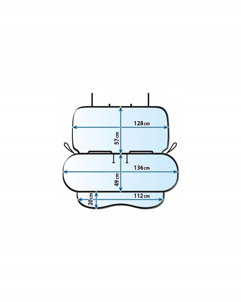 Професійно виготовлений подвійний захисний килимок із товстим поролоновим матрацом для заднього сидіння автомобіля, працює як підкладка для дитячих сидінь і як килимок для транспортування собаки чи багажу на задньому сидінні. Його можна використовувати під двома сидіннями одночасно, оскільки він має правильний розмір. Його також можна використовувати для сидінь з Isofix.