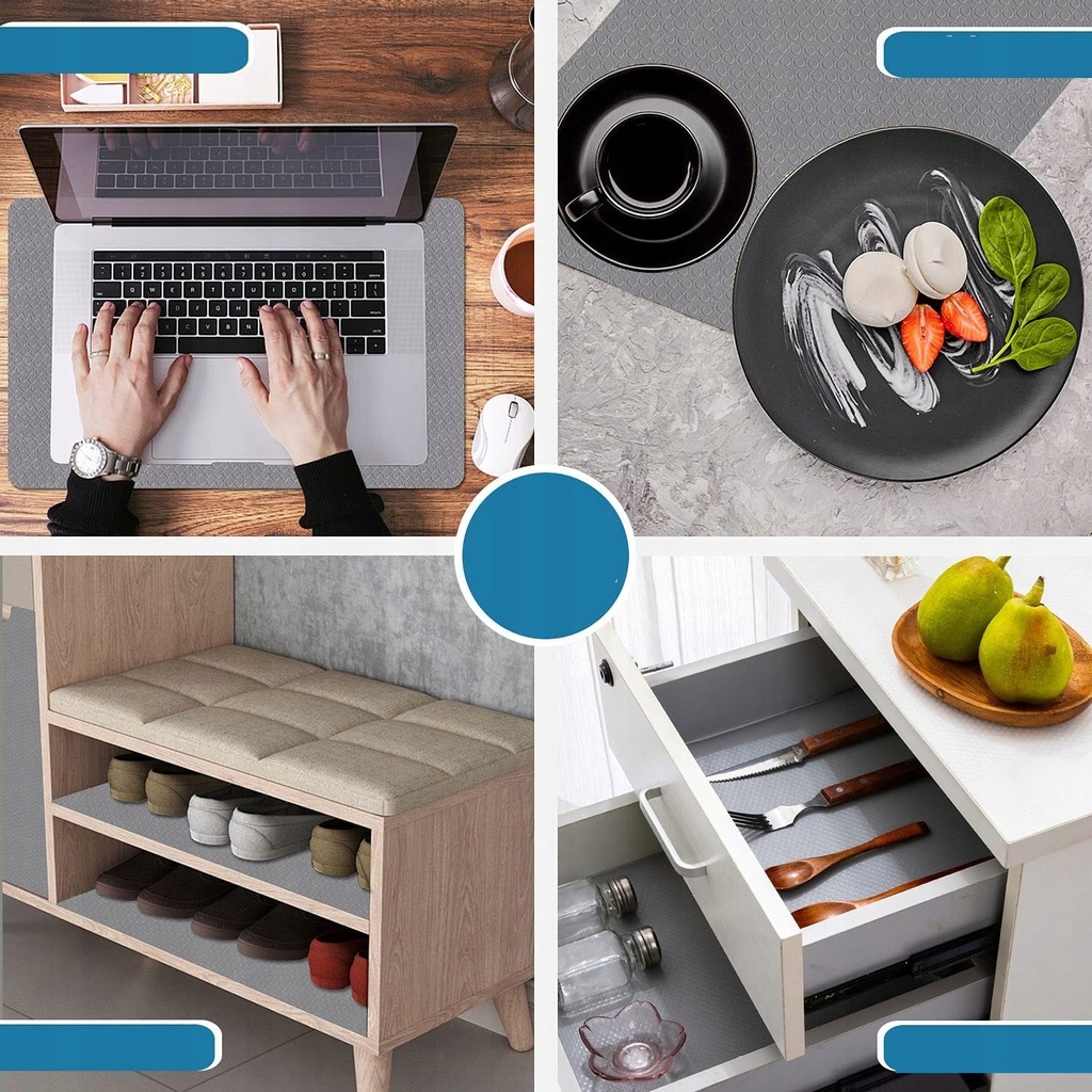 - Багатофункціональний: ідеально підходить для полиць, холодильників, ящиків, шаф, шаф. Його можна використовувати як полиці, ящики, вставки на холодильник, кухонні шафи, шафи, шафи, колодки та настільні килимки. Легко вимірювати та вирішувати власні потреби.